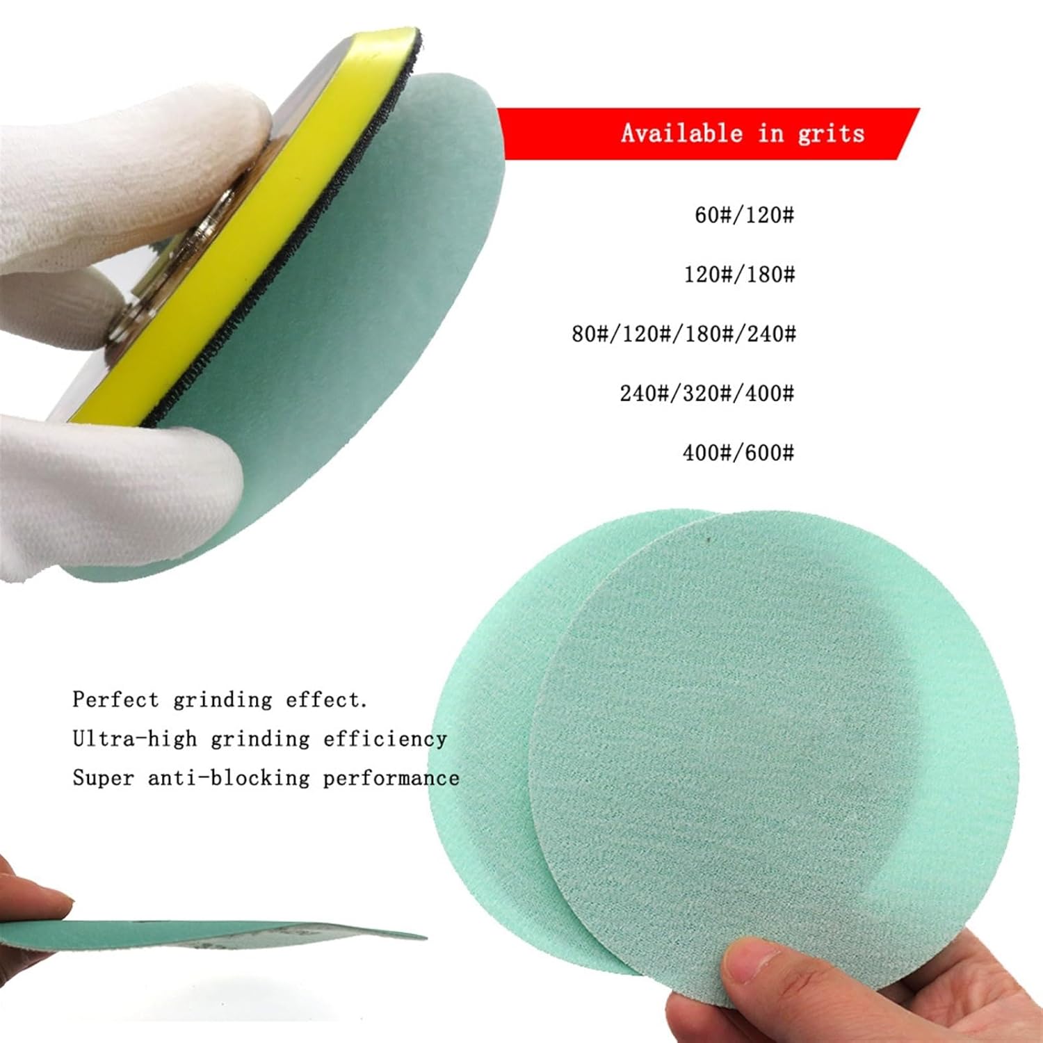 Abrasive Accessories / Dressing ToolsProduct Name: PET film green disc hook and loop Specifications: 5 inch 125mm Grits: 60/80/120/150/180/240/320/400/600/800/1000/1200/1500/2000 Package included: 10pcs sandpaper