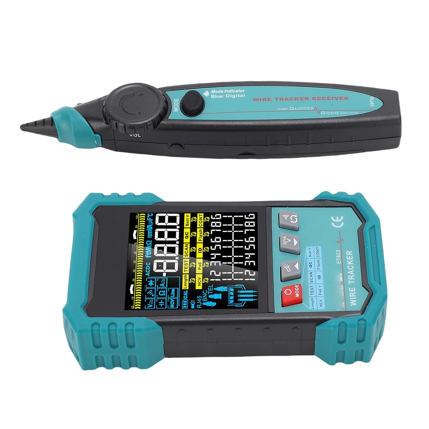 [Multifunctional Network Diagnostic Tool] This professional ethernet cable tester combines 7 essential functions in one device including continuity testing power supply detection 400m length measurement port tracing fault scanning loopback testing and led illumination. perfect for testing cat5 cat5e cat6 rj45 and rj11 cables it's an indispensable tool for network installers it professionals and telecom engineers working with both underground and above-ground cabling systems. [Advanced Poe Ncv Voltage Detection] The intelligent tester automatically identifies power over ethernet (poe) configurations detecting voltage levels from 1-60v with 2% accuracy. it recognizes standard/af compliant pse types and poe implementations while the built-in ncv function safely detects live ac voltage in cables. safely verify rk>/utp cable conditions before handling or installation. [Long-range Cable Measurement + Rechargeable] Measure cable lengths up to 400 meters with 99% accuracy without calibration and detect faults along the entire run. the built-in 1250mah lithium battery supports type-c fast charging while the included 550mah backup battery ensures uninterrupted operation. the bright led worklight enables efficient troubleshooting in dark server rooms or crawl spaces. [ Digital Cable Scanning] Featuring k>-generation digital tracing technology with three specialized modes: normal anti-interference and poe detection. the advanced ac filtering system provides clear analog signals for accurate wire mapping identifying shorts opens crosses and proper crimping of rj45 connectors. quickly trace cables through walls floors or cable bundles. [ Identification System] Revolutionize your network troubleshooting with the unique port flashing feature that activates indicator lights on 10m/100m/1000m switches routers and hubs. the anti-interference tracing capability precisely locates network ports in crowded racks while testing cable crimp quality. save hours