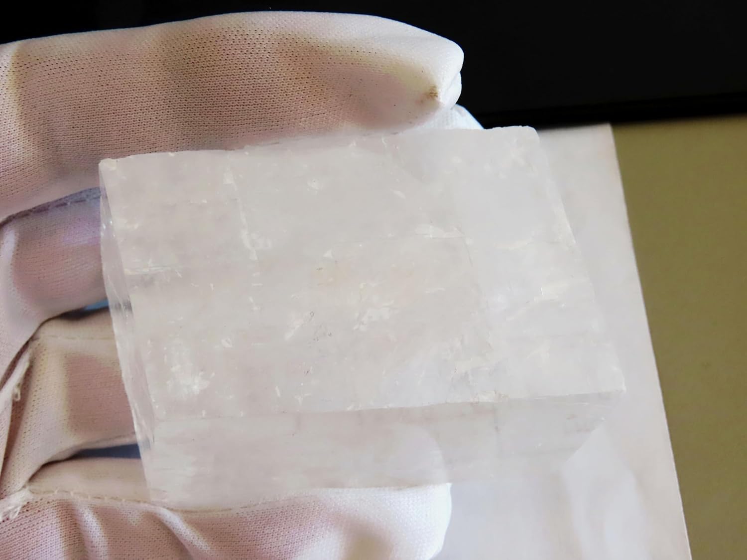 Discover the mesmerizing Natural Iceland Spar Crystal, a remarkable specimen of optical calcite. This transparent white crystal, historically known as Viking Sunstone, showcases exceptional optical properties that have fascinated collectors and enthusiasts for centuries. Each piece features the distinctive double refraction effect, creating a unique visual phenomenon where objects appear doubled when viewed through the crystal. The crystal's natural rhombohedral structure and glass-like clarity make it both a stunning display piece and a fascinating demonstration of optical physics. Perfect for collectors, mineral enthusiasts, or those interested in historical navigation techniques, this substantial specimen allows you to experience the same optical properties that may have aided Viking navigators in determining the position of the sun on cloudy days. Each crystal is unique in its precise formation and clarity, making it a one-of-a-kind addition to any collection. The substantial size of this specimen makes it ideal for both display and hands-on demonstration of its remarkable properties.