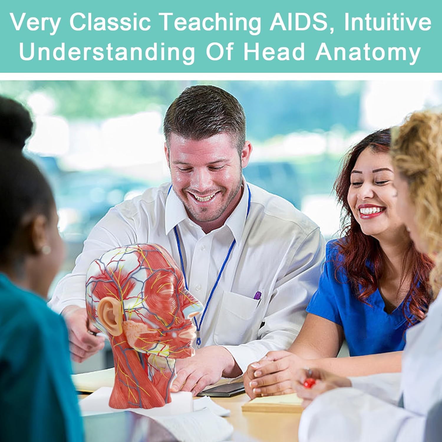 Merinden Human Half Head Superficial Neurovascular Anatomical Model with Blood Vessels Detailed Muscle Structure and Colorful Manual for Medical Science Education Study or Teaching