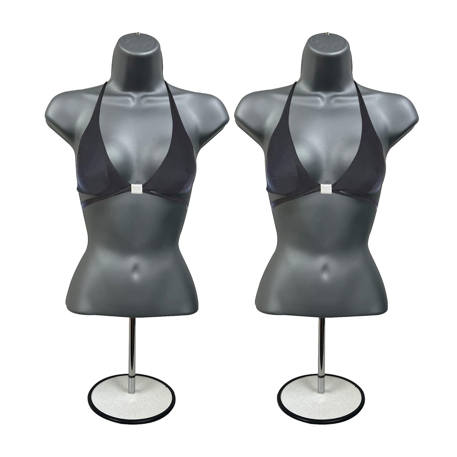 PACKAGE INCLUDES:2 QTY - WHITE FEMALE HOLLOW BACK MANNEQUIN TORSO FORM - OPEN BACK2 QTY - TABLE TOP METAL STAND WITH METAL POLE ADJUSTABLE: 19" to 38" INCLUDING MANNEQUIN2 QTY - HOOK/DOUBLE HANGER (SWIVEL) FOR HANGINGFEATURES:CONDITION: BRAND NEWCOLOR: WHITE MATERIAL: HARD PLASTIC-DURABLE HIGH QUALITY INJECTION MOLDEDCOMES WITH A DOUBLE HOOK FOR HANGINGSPECIFICATION (Approx.):This item is a half rounded form. The measurements are from the front side only.SIZE: SMALL TO MEDIUMBODY LENGTH (BODY ONLY without HOOK): 22.8”SHOULDER TO SHOULDER: 18.7”BUST: 19.5”WAIST: 12.8”