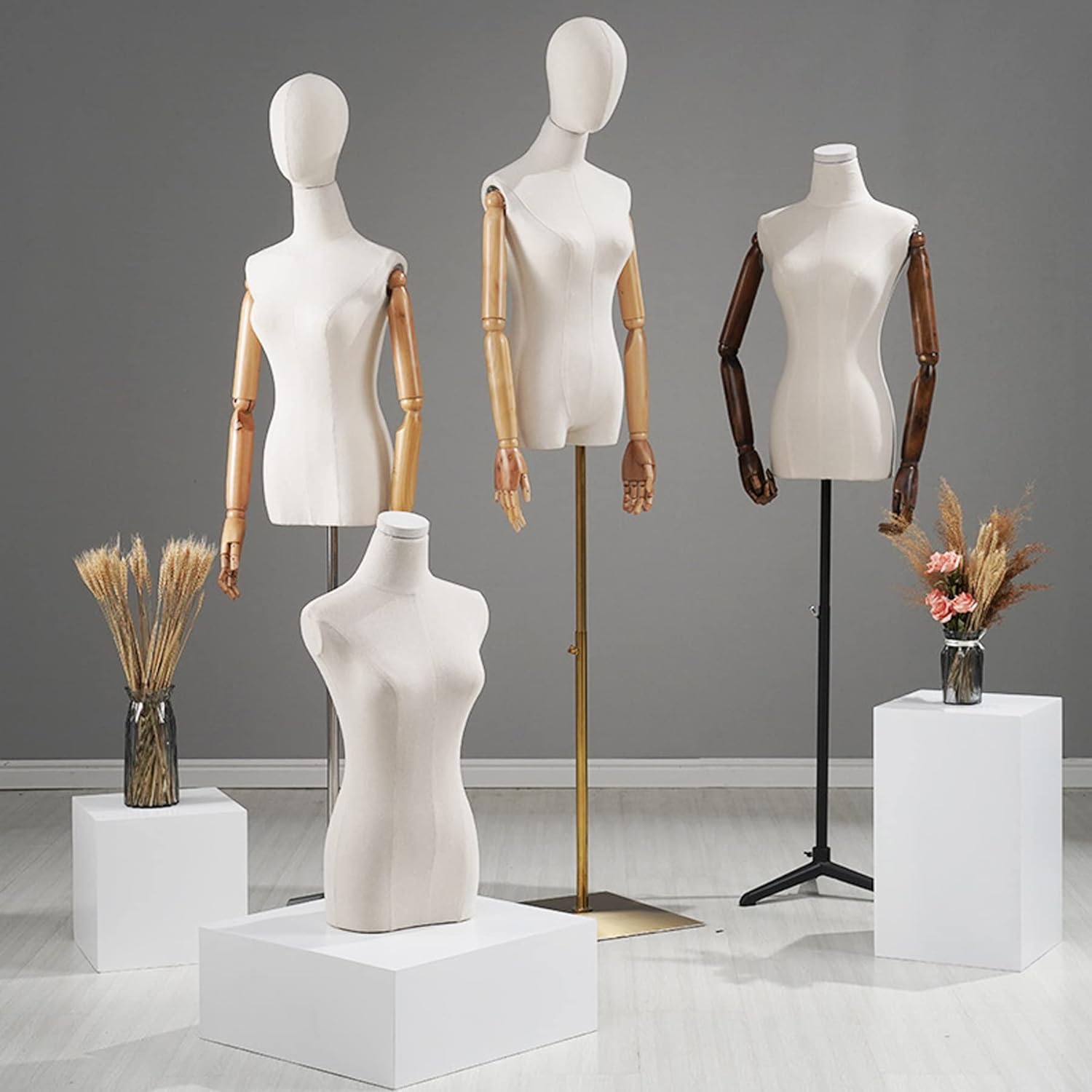 Men's Props Underwear Display Stand:Capture your most cherished moments with our premium Female Mannequin Dress Form, designed to your clothing display experience. This versatile Model Body Display Torso is an essential tool for anyone looking to highlight their clothing collection in various settings. Ideal for use in bedrooms, boutiques, studios, and during performances, it serves as both a functional display solution and an attractive decor element. Prepare your outfits for the next day with ease while adding a touch of charm to your environment.The mannequin is perfect for showcasing a wide range of apparel, including sweaters, t-shirts, jackets, dresses, blouses, and accessories. Whether you're displaying items in shop windows, on counters, or layered display stands, this dress form meets all your presentation needs.**Product Specifications:**- **Inner Material:** Made from durable ABS plastic, ensuring environmental safety and odorlessness.- **Color:** Elegant white finish that complements any decor.- **Fabric Material:** Crafted with thick linen for a high-quality look.- **Base Type:** Features a triangular square bottom disc with universal wheels for easy mobility.- **Base Color Options:** Available in gold, silver, and black to match your aesthetic preferences.**What’s Included:**- Model Body Display Torso x1Enhance your retail space or home with our mannequin that combines functionality with style, all while reflecting your unique personality and taste.