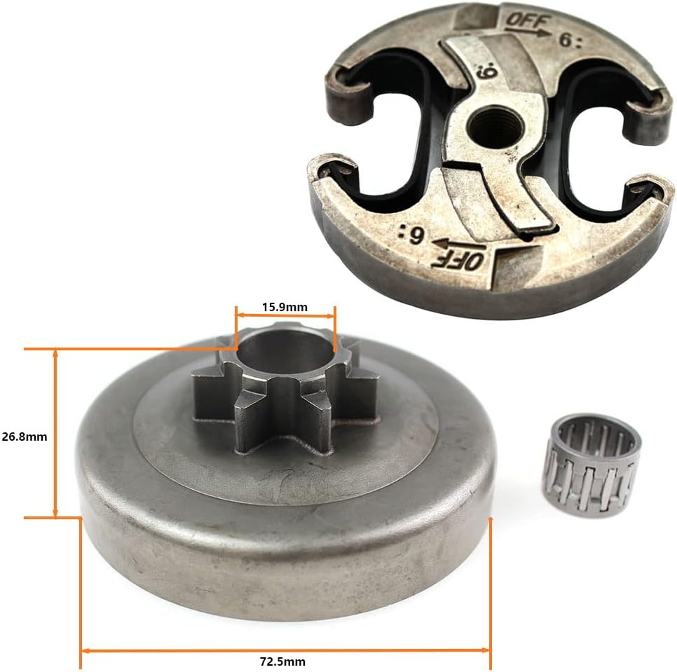 Package: 1 x Clutch, 1 x Clutch Drum Chain Sprocket, 1 x Needle BearingModel Number : SSC02HS3407TSize:Spur Pitch:0.325"Teeth:7Total Height: 26.8mmHole ID :15.9Drum ID :69