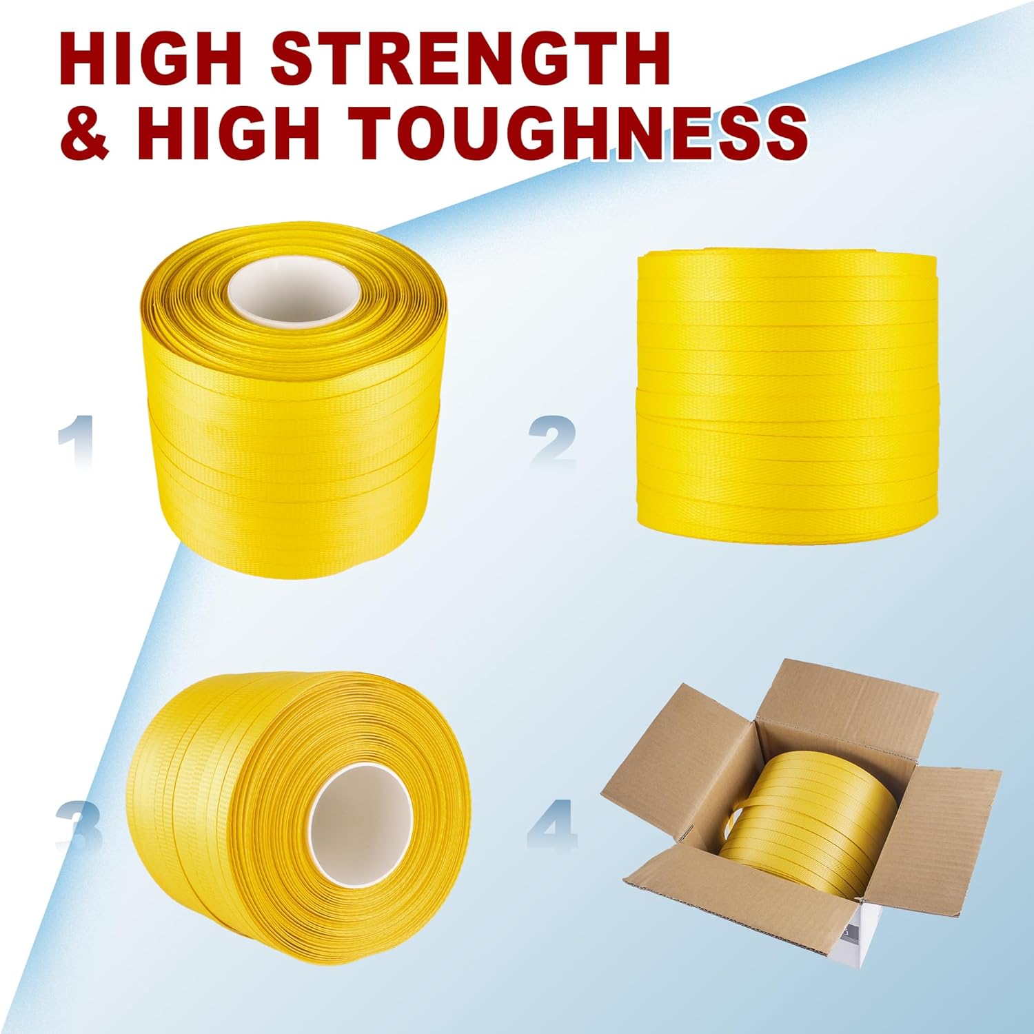 Heavy Duty Packaging 1/2" x 1000’ Polypropylene (PP) Strapping and 100 pcs Plastic Buckles with Self Dispensing Box Kit - Industrial Grade Pallet Strapping,300 lbs Break Strength