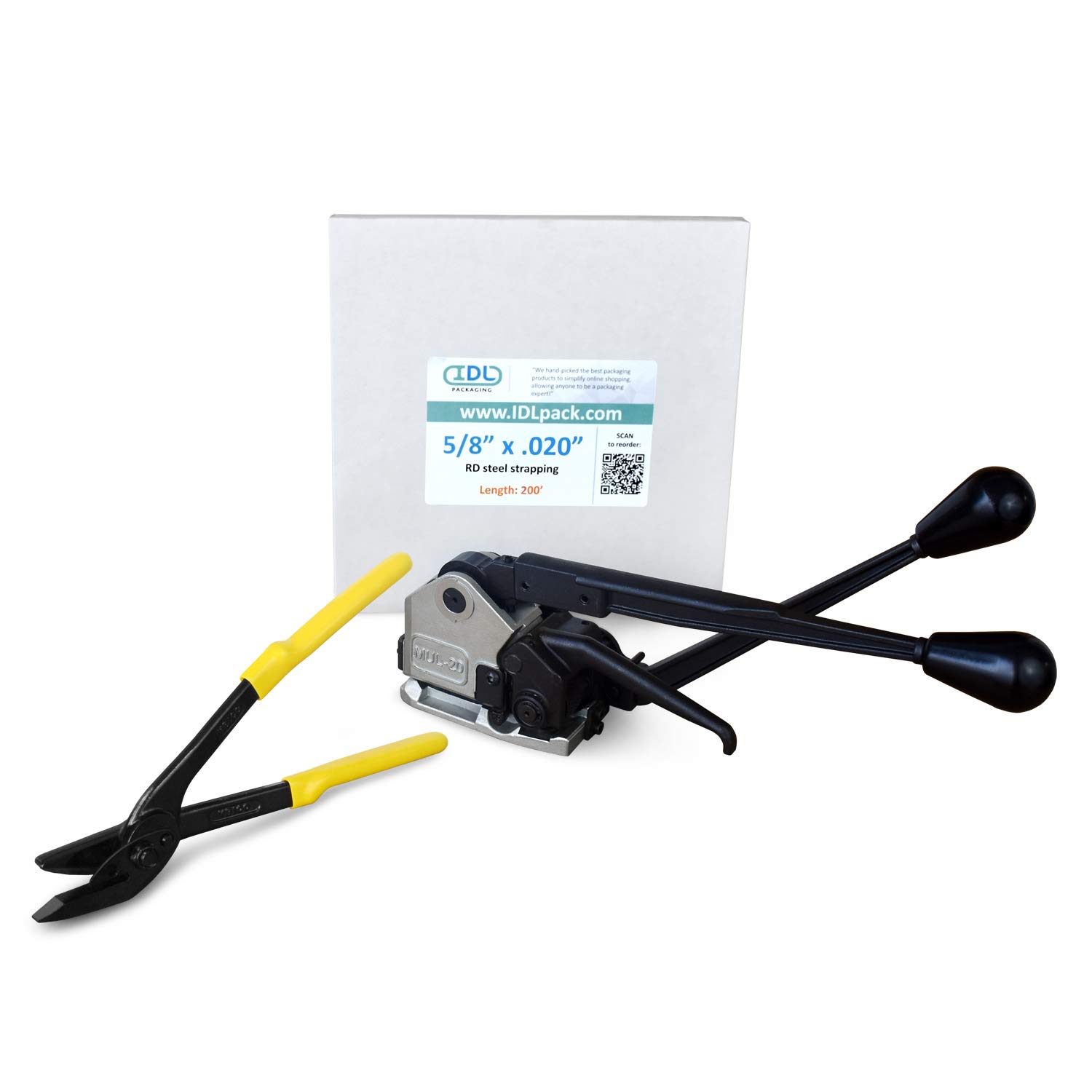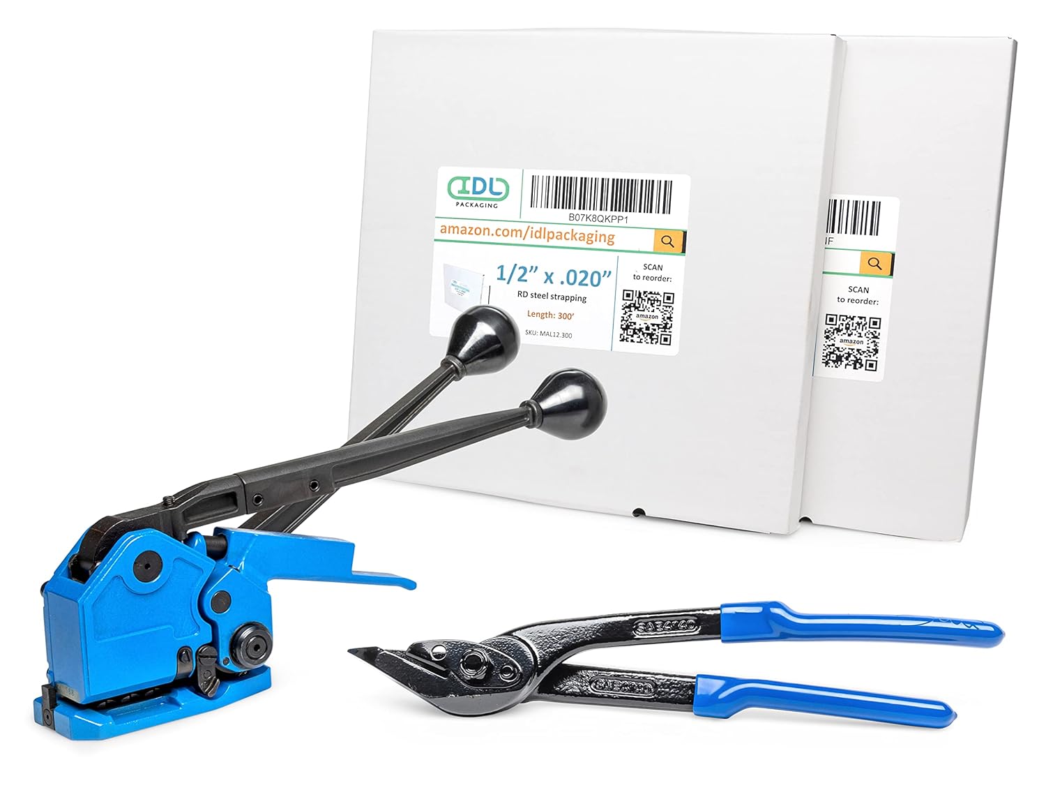 The Ultimate Steel Strapping Kit includes: 2 coils of 5/8 inch x 200 feet steel strapping (400 feet total length), 1400 lbs break strength; Teknika MUL-20 combination steel strapping tensioner (heavy-duty 3-in-1 strapping tool that tensions, seals and cuts the strapping); H-201 strapping cutter.All consumables including strapping and seals can be reordered separately.This Ultimate Kit completed with Teknika MUL 3-in-1 combination tool that applies tightening, sealing, and cutting force to strapping. The Teknika MUL tolls has been on the market for 25 years and has a proven track record of durability and efficiency in intensive application. 75% of Teknika MUL tools sold in 2010 are still operating on the market!The Ultimate kit is ideal for applications where speed and ease of use are important. Unique sealing mechanism ensures superior joint strength.We also offer two other options of complete strapping solutions that include pre-picked strapping products that work perfectly together. Standard — versatile and affordable kit for medium-volume works. PRO — heavy-duty strapping tools that will serve for a long time. Perfect for high volume and intensive strapping works.The full range of strapping kits you can find at our IDL Packaging Amazon Brand Store. We presented the wide variety of strapping solutions for efficient and quick strapping of any volume, weight and shape of packaging.