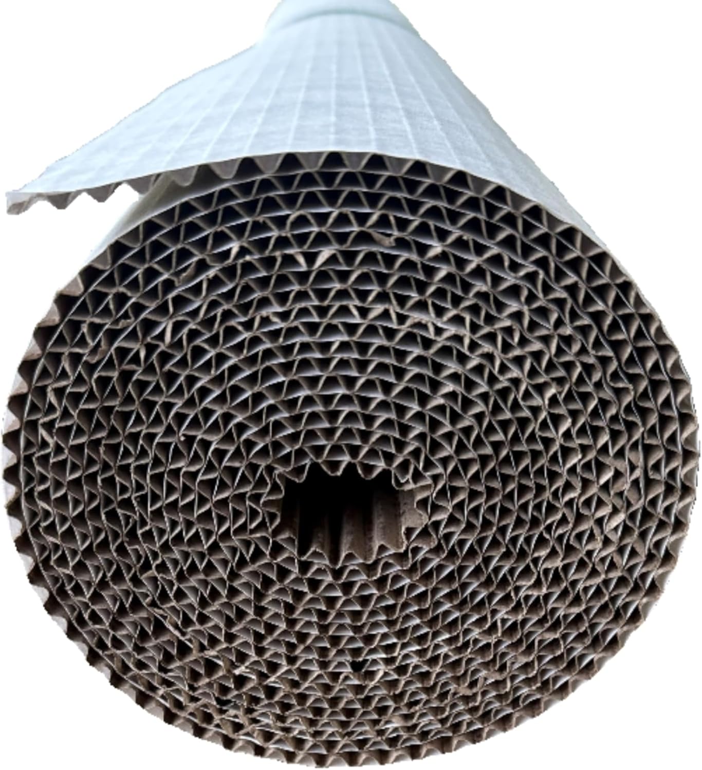 White 12' x 36" Singleface Corrugated B-Flute Cardboard Roll *Single face Corrugated Flexible Singleface Corrugated conforms to all shapes and sizes. *Singleface is kraft "B" flute corrugated. *Approx. 1/8" flutes provide shock absorbing cushioning. *Use to protect metal or glass parts. *Great for shipping books. *Great Floor or Counter top protection during Construction