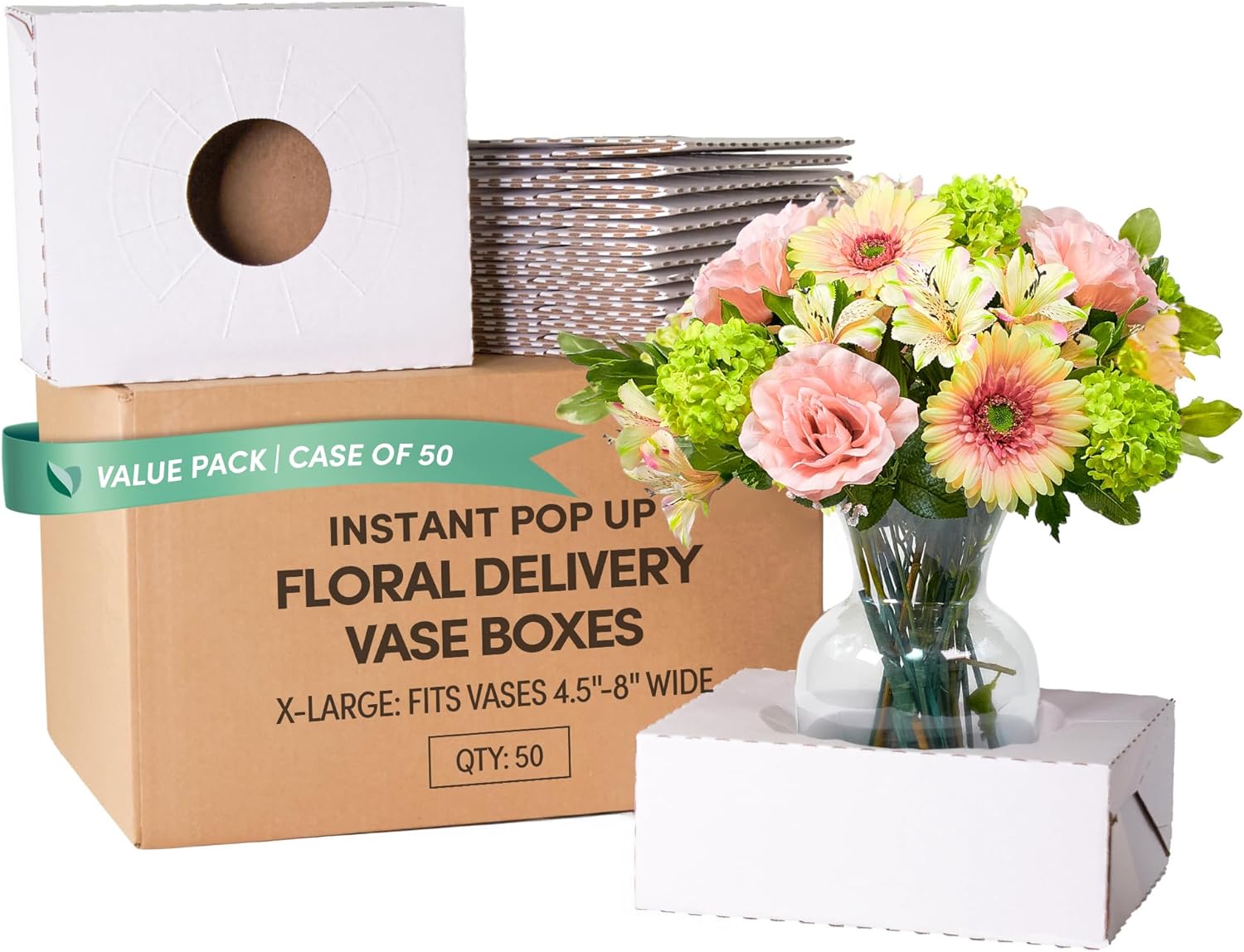 Holiday Designs - Pop-Up Florist Delivery Box, Heavy Duty Corrugated Cardboard Vase Boxes for Secure Floral Arrangements During Transport, 12 x 10 x 4.5 (White, Extra Large: 10 Pack)