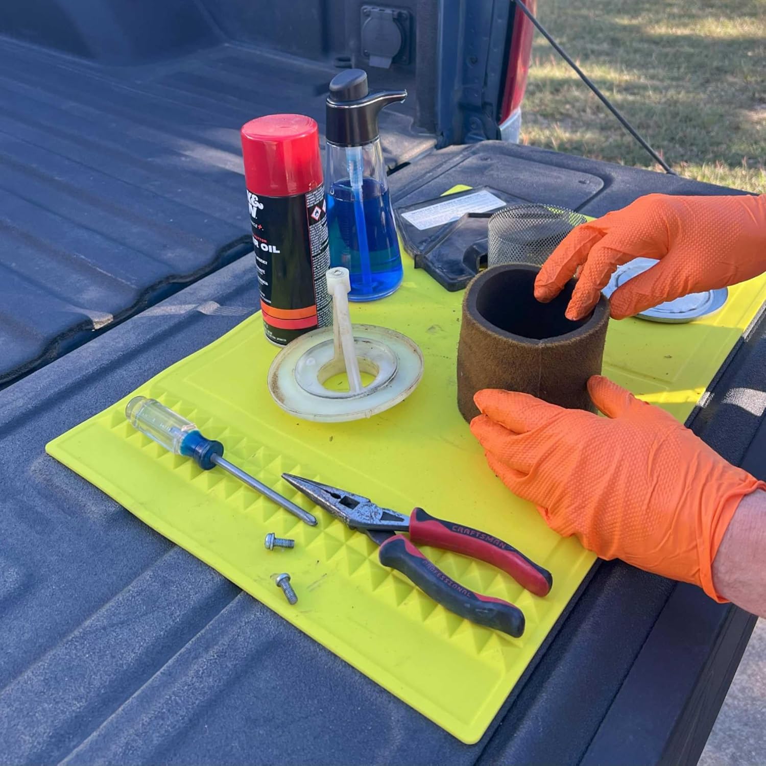 Tearing down a carburetor? Gluing up a drawer? Feeding a toddler? All messy jobs. Keep your space organized and stop losing parts and pieces with the Mullet Workbench Duty Mat. Carve out a work space for your project regardless of how messy things are around you.