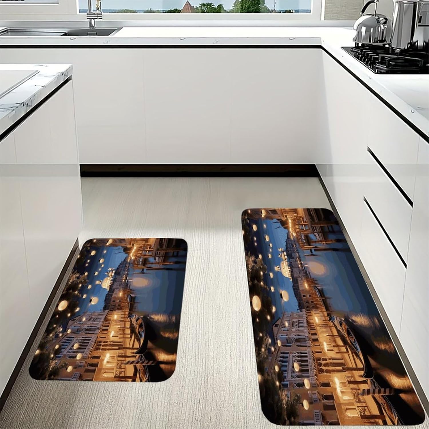 Elevate your standing experience with our 2-piece Cushioned Anti Fatigue Mat set, designed to blend comfort, functionality, and style across every room in your home. As a Comfort Desk Mat, it also eases the pressure of long workdays, making it a must-have for remote workers and home chefs alike.The Cushioned Anti-Fatigue Non-Skid Rug core offers targeted support that reduces strain on your feet, knees, and lower back—perfect for anyone who spends hours standing. Unlike thin, flimsy alternatives, this Beautiful Venice at Night Kitchen Rug uses pill-resistant flannel that stays soft, even with daily use. It works equally well as a Non Slip Comfort Standing Mat in the laundry room, turning tedious folding and sorting tasks into a more comfortable routine.With its warm, inviting aesthetic, this Farmhouse Anti Fatigue Mat fits seamlessly into rustic, farmhouse, or modern home decor. Use the Cushioned Kitchen Rug as a soft landing spot by your bathroom shower, or bring it outdoors to create a comfortable standing area for gardening or grilling. Every detail is crafted to fit your busy lifestyle, from the easy-clean fabric to the versatile sizing that adapts to any space.