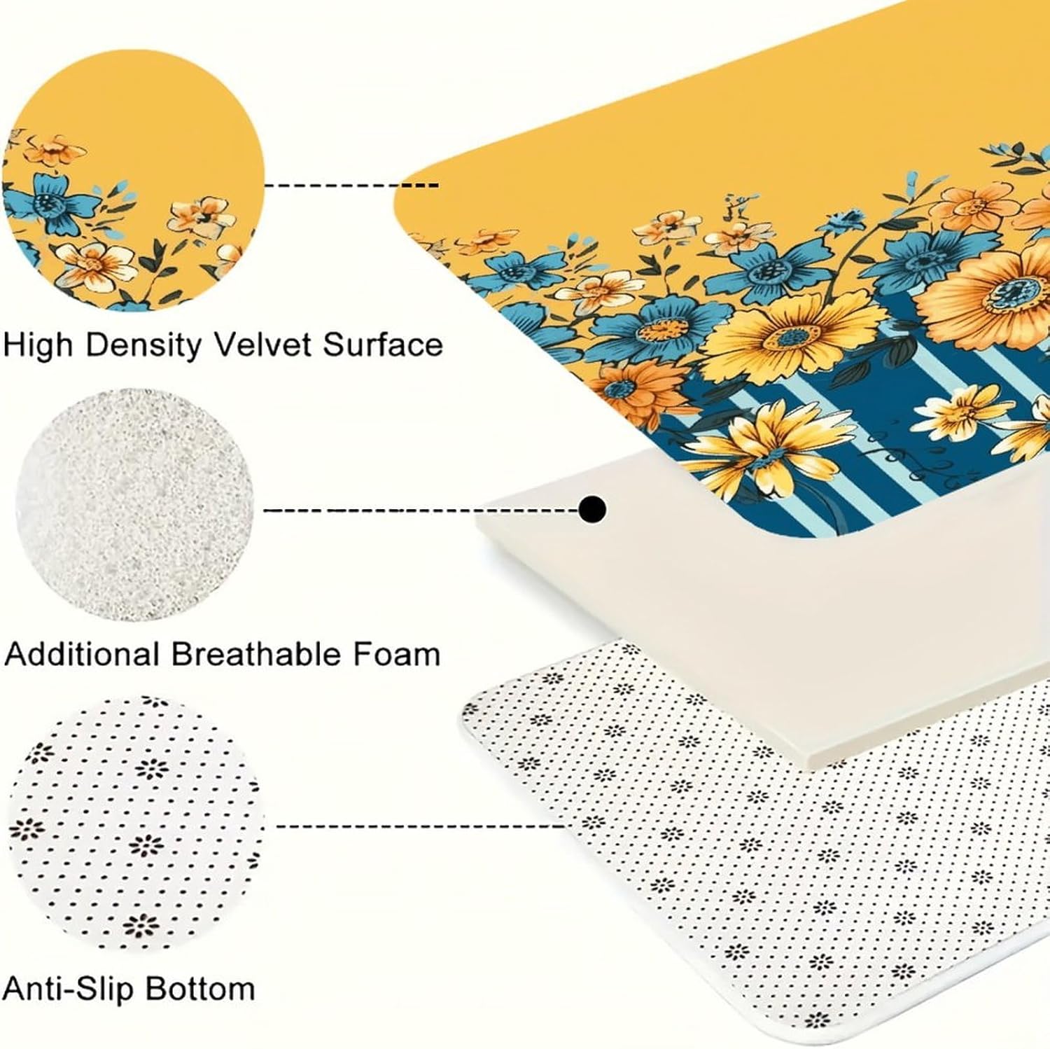 Transform your daily routine with our 3PCS Kitchen Mats for Floor—a set that combines comfort, style, and practicality. As a Cushioned Anti-Fatigue Kitchen Rug, it provides a soft, supportive surface to ease the strain of long hours standing at the sink or stove. The Non-Slip Standing Sink Mat design ensures it stays put, even on busy kitchen floors, while the Waterproof Non-Slip Kitchen Mat feature repels spills for quick cleanup.This versatile set isn't just for kitchens. Use the Kitchen Floor Mat in your office to create a more comfortable standing workspace, or place the Non-Skid Standing Mat in the laundry room to cushion your feet while folding clothes. As a Kitchen Decor Runner Rug, it adds a cohesive touch to any room, blending with both modern and farmhouse decor styles seamlessly.Crafted with pill-resistant flannel, these Comfort Kitchen Mats are built to handle daily use without losing their softness or shape. The Farmhouse Kitchen Rugs design brings a warm, inviting feel to your home, while the Waterproof Non-Slip Kitchen Rug functionality ensures long-lasting use. Easy to clean and quick to dry, this set is a practical and stylish addition to any space, from cozy kitchens to busy office floors.