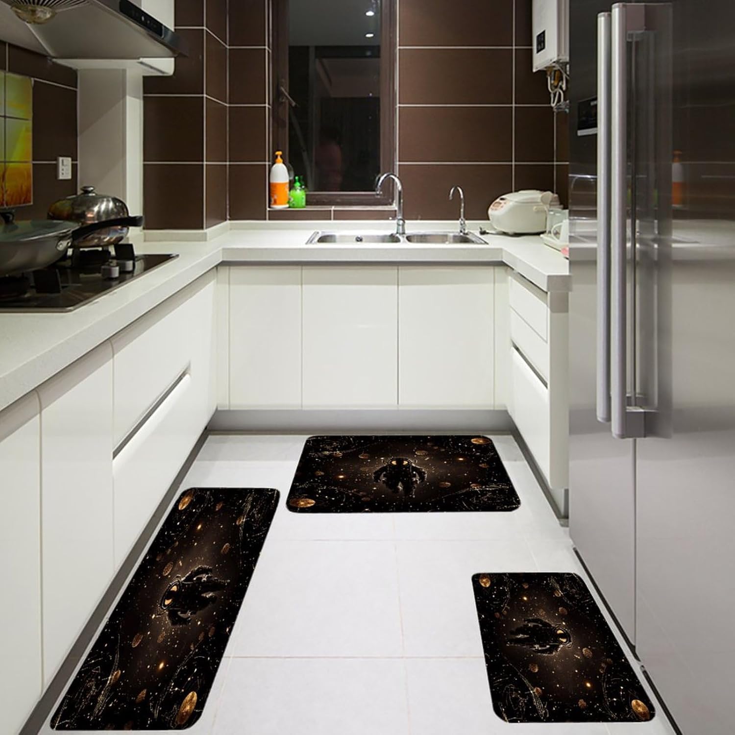 Transform your daily routine with our 3PCS Kitchen Mats for Floor—a set that combines comfort, style, and practicality. As a Cushioned Anti-Fatigue Kitchen Rug, it provides a soft, supportive surface to ease the strain of long hours standing at the sink or stove. The Non-Slip Standing Sink Mat design ensures it stays put, even on busy kitchen floors, while the Waterproof Non-Slip Kitchen Mat feature repels spills for quick cleanup.This versatile set isn't just for kitchens. Use the Kitchen Floor Mat in your office to create a more comfortable standing workspace, or place the Non-Skid Standing Mat in the laundry room to cushion your feet while folding clothes. As a Kitchen Decor Runner Rug, it adds a cohesive touch to any room, blending with both modern and farmhouse decor styles seamlessly.Crafted with pill-resistant flannel, these Comfort Kitchen Mats are built to handle daily use without losing their softness or shape. The Farmhouse Kitchen Rugs design brings a warm, inviting feel to your home, while the Waterproof Non-Slip Kitchen Rug functionality ensures long-lasting use. Easy to clean and quick to dry, this set is a practical and stylish addition to any space, from cozy kitchens to busy office floors.