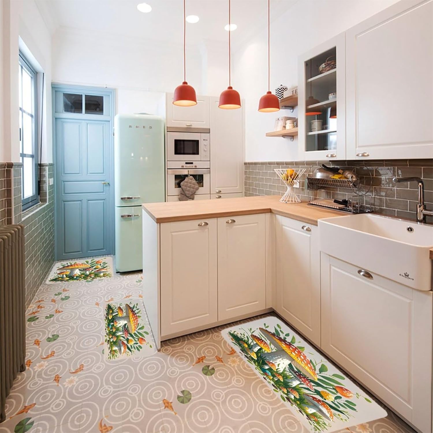 Transform your kitchen, office, or laundry room with our 3PCS kitchen mats set—a must-have farmhouse kitchen rugs and spring kitchen mats combo. As a non slip soft kitchen area rug and cushioned anti fatigue kitchen mat, it's crafted from pill-resistant flannel that offers a gentle, supportive surface for standing long hours. The farmhouse runner rug and farmhouse low-pile runner rug pieces feature a low-profile floor mat for kitchen design, ensuring they fit effortlessly under doors and in tight spaces.This kitchen decor runner rug set is more than just a stylish addition; it's a practical non-slip standing sink mat. Whether you're washing dishes, working at your desk, or doing laundry, the anti fatigue mats provide steady support to keep you comfortable. The non-slip backing keeps each kitchen floor rug securely in place, even in high-traffic areas.Perfect for indoor and outdoor use, this set embodies the cozy charm of farmhouse kitchen rugs and the fresh vibe of spring kitchen mats. It's a versatile, easy-to-care-for solution that combines functionality with timeless style, making it an ideal choice for any home upgrade.