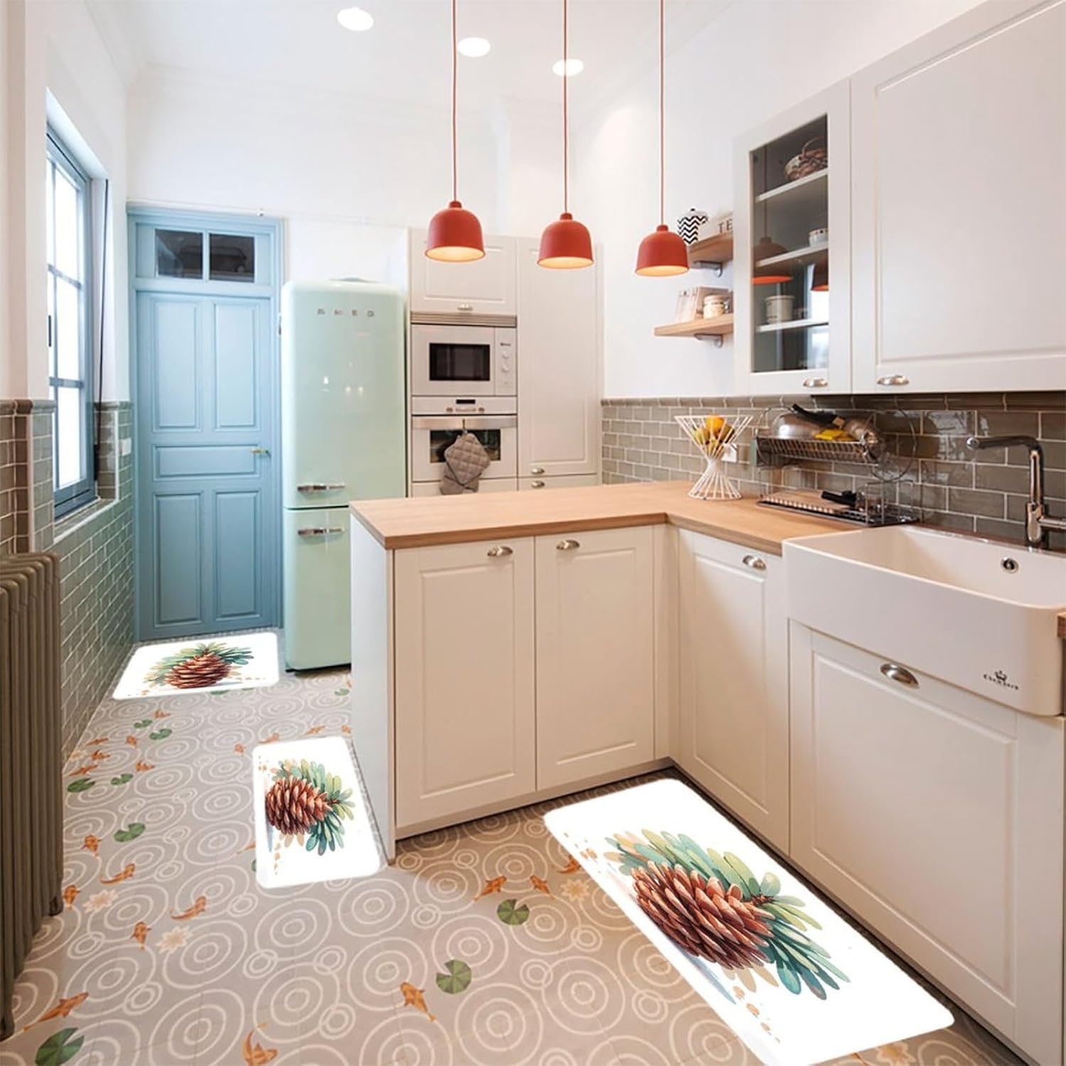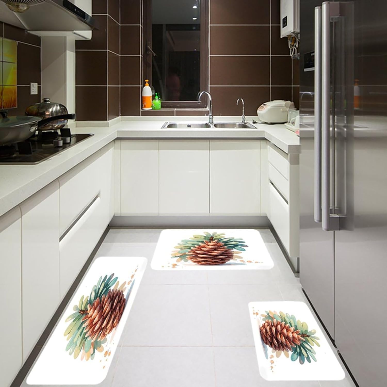 Transform your kitchen, office, or laundry room with our 3PCS kitchen mats set—a must-have farmhouse kitchen rugs and spring kitchen mats combo. As a non slip soft kitchen area rug and cushioned anti fatigue kitchen mat, it's crafted from pill-resistant flannel that offers a gentle, supportive surface for standing long hours. The farmhouse runner rug and farmhouse low-pile runner rug pieces feature a low-profile floor mat for kitchen design, ensuring they fit effortlessly under doors and in tight spaces.This kitchen decor runner rug set is more than just a stylish addition; it's a practical non-slip standing sink mat. Whether you're washing dishes, working at your desk, or doing laundry, the anti fatigue mats provide steady support to keep you comfortable. The non-slip backing keeps each kitchen floor rug securely in place, even in high-traffic areas.Perfect for indoor and outdoor use, this set embodies the cozy charm of farmhouse kitchen rugs and the fresh vibe of spring kitchen mats. It's a versatile, easy-to-care-for solution that combines functionality with timeless style, making it an ideal choice for any home upgrade.