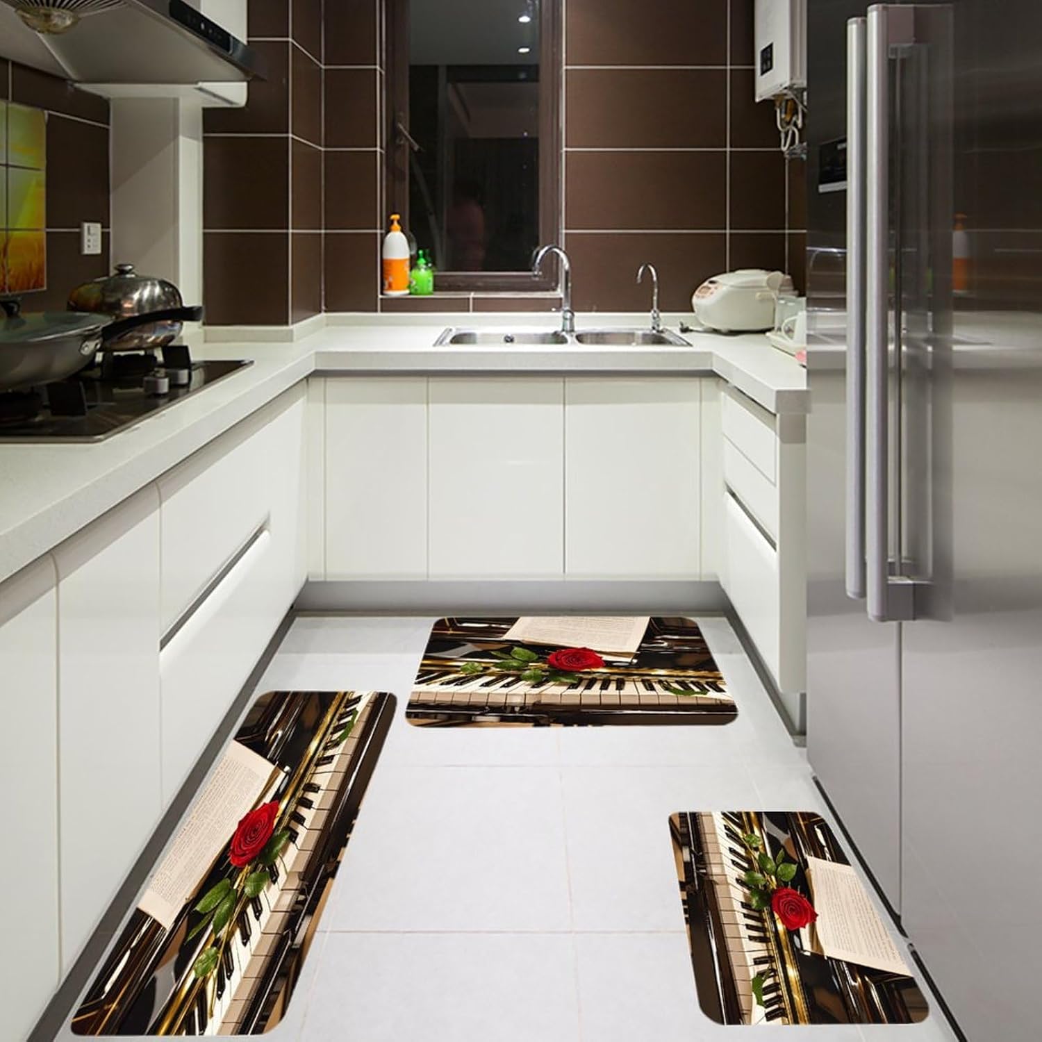 Transform your kitchen, office, or laundry room with our 3PCS kitchen mats set—a must-have farmhouse kitchen rugs and spring kitchen mats combo. As a non slip soft kitchen area rug and cushioned anti fatigue kitchen mat, it's crafted from pill-resistant flannel that offers a gentle, supportive surface for standing long hours. The farmhouse runner rug and farmhouse low-pile runner rug pieces feature a low-profile floor mat for kitchen design, ensuring they fit effortlessly under doors and in tight spaces.This kitchen decor runner rug set is more than just a stylish addition; it's a practical non-slip standing sink mat. Whether you're washing dishes, working at your desk, or doing laundry, the anti fatigue mats provide steady support to keep you comfortable. The non-slip backing keeps each kitchen floor rug securely in place, even in high-traffic areas.Perfect for indoor and outdoor use, this set embodies the cozy charm of farmhouse kitchen rugs and the fresh vibe of spring kitchen mats. It's a versatile, easy-to-care-for solution that combines functionality with timeless style, making it an ideal choice for any home upgrade.