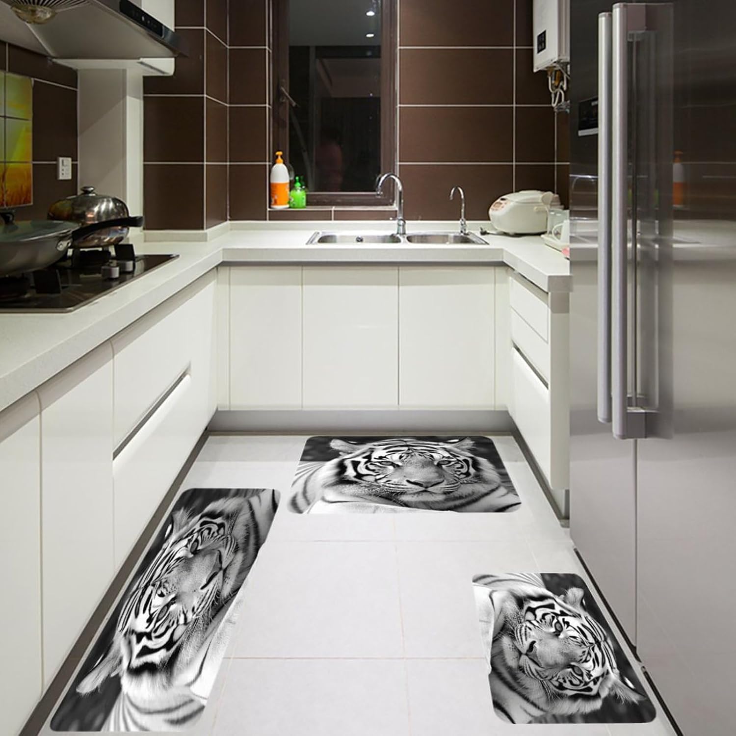 The kitchen is the heart of every home, and having reliable floor protection can transform your daily routine. Our 3-piece set of Thickened Kitchen Mats combines soft anti-pilling flannel with practical functionality, addressing all your daily needs. As Absorbent Floor Mats, they quickly soak up spills, preventing slips and falls while keeping your floors dry. The sturdy construction adds extra cushioning, reducing fatigue from long hours of standing at the stove or sink.No more settling for ill-fitting mats that leave your space unprotected. With three versatile sizes, including a Kitchen Runner Rug for narrow areas, this set covers every corner of your kitchen. The non-skid backing of our Anti-Slip Kitchen Rugs ensures they stay securely in place on tile, hardwood, or laminate floors, so you can move around with confidence. These Washable Kitchen Rugs are also fade-resistant, maintaining their fresh look even after multiple washes.Why choose plain floor coverings when you can have style and utility? Our Customizable Kitchen Mats let you print unique designs, turning them into eye-catching Decorative Kitchen Mats that complement your decor. Perfect as Bathroom Rug Sets, Outdoor Floor Rugs, or Multi-Purpose Floor Mats in laundry rooms, they’re a versatile addition to any home. As Stain-Resistant Floor Mats and Quick-Drying Rugs, they offer long-lasting performance with minimal upkeep, making them the ideal choice for busy households.