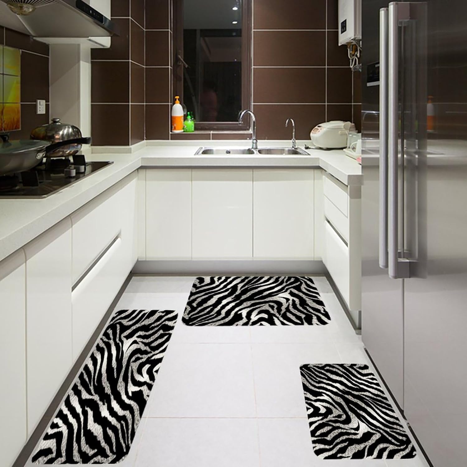 The kitchen is the heart of every home, and having reliable floor protection can transform your daily routine. Our 3-piece set of Thickened Kitchen Mats combines soft anti-pilling flannel with practical functionality, addressing all your daily needs. As Absorbent Floor Mats, they quickly soak up spills, preventing slips and falls while keeping your floors dry. The sturdy construction adds extra cushioning, reducing fatigue from long hours of standing at the stove or sink.No more settling for ill-fitting mats that leave your space unprotected. With three versatile sizes, including a Kitchen Runner Rug for narrow areas, this set covers every corner of your kitchen. The non-skid backing of our Anti-Slip Kitchen Rugs ensures they stay securely in place on tile, hardwood, or laminate floors, so you can move around with confidence. These Washable Kitchen Rugs are also fade-resistant, maintaining their fresh look even after multiple washes.Why choose plain floor coverings when you can have style and utility? Our Customizable Kitchen Mats let you print unique designs, turning them into eye-catching Decorative Kitchen Mats that complement your decor. Perfect as Bathroom Rug Sets, Outdoor Floor Rugs, or Multi-Purpose Floor Mats in laundry rooms, they’re a versatile addition to any home. As Stain-Resistant Floor Mats and Quick-Drying Rugs, they offer long-lasting performance with minimal upkeep, making them the ideal choice for busy households.