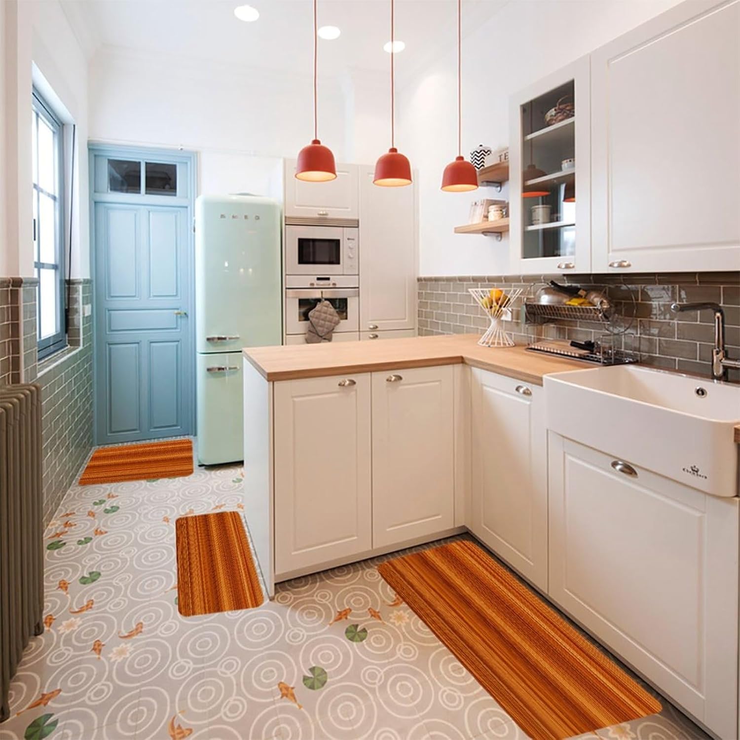 The kitchen is the heart of every home, and having reliable floor protection can transform your daily routine. Our 3-piece set of Thickened Kitchen Mats combines soft anti-pilling flannel with practical functionality, addressing all your daily needs. As Absorbent Floor Mats, they quickly soak up spills, preventing slips and falls while keeping your floors dry. The sturdy construction adds extra cushioning, reducing fatigue from long hours of standing at the stove or sink.No more settling for ill-fitting mats that leave your space unprotected. With three versatile sizes, including a Kitchen Runner Rug for narrow areas, this set covers every corner of your kitchen. The non-skid backing of our Anti-Slip Kitchen Rugs ensures they stay securely in place on tile, hardwood, or laminate floors, so you can move around with confidence. These Washable Kitchen Rugs are also fade-resistant, maintaining their fresh look even after multiple washes.Why choose plain floor coverings when you can have style and utility? Our Customizable Kitchen Mats let you print unique designs, turning them into eye-catching Decorative Kitchen Mats that complement your decor. Perfect as Bathroom Rug Sets, Outdoor Floor Rugs, or Multi-Purpose Floor Mats in laundry rooms, they’re a versatile addition to any home. As Stain-Resistant Floor Mats and Quick-Drying Rugs, they offer long-lasting performance with minimal upkeep, making them the ideal choice for busy households.