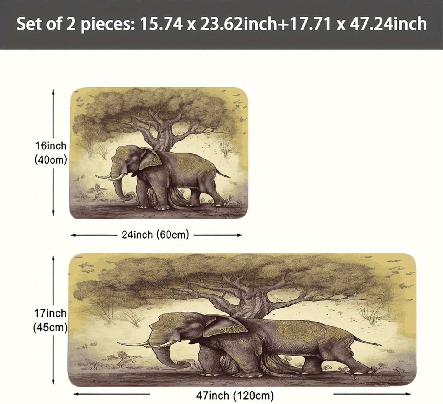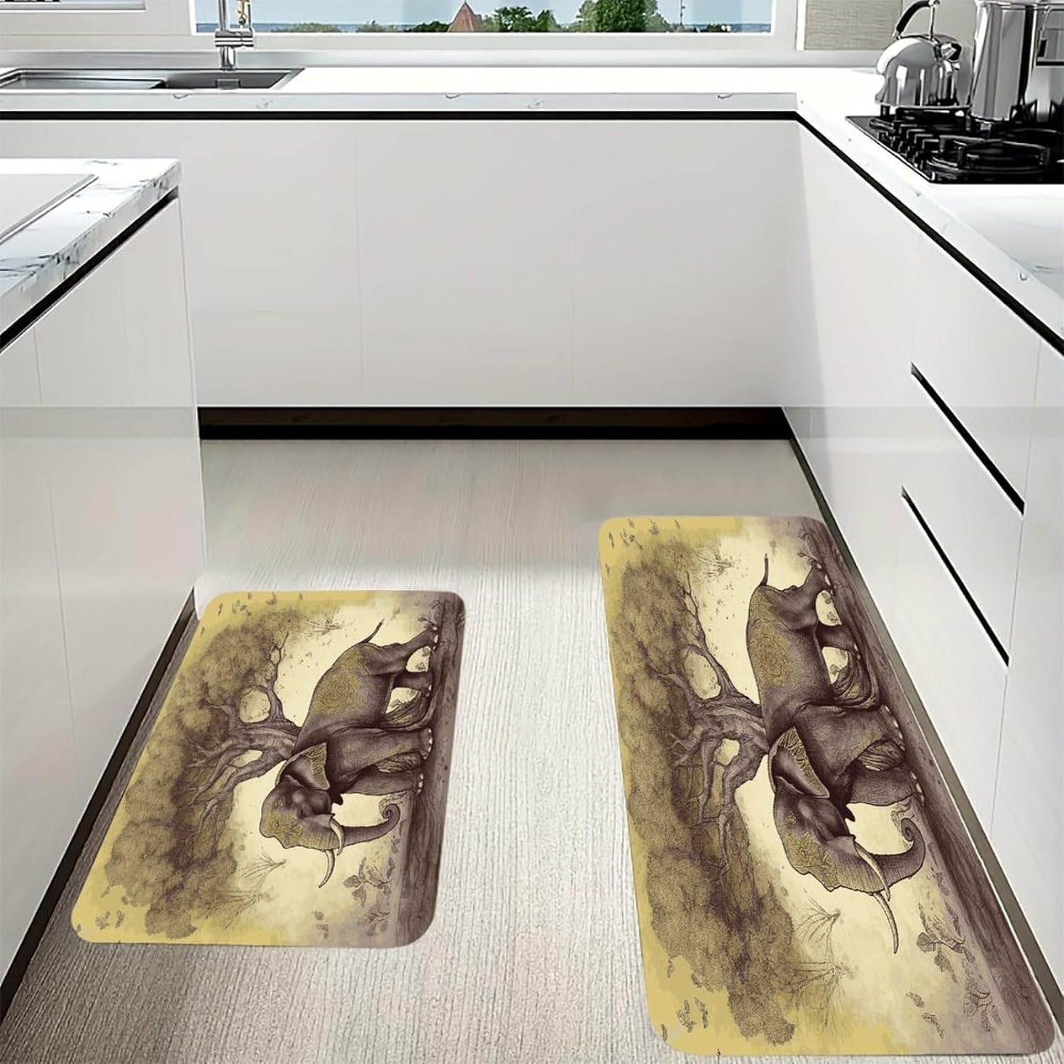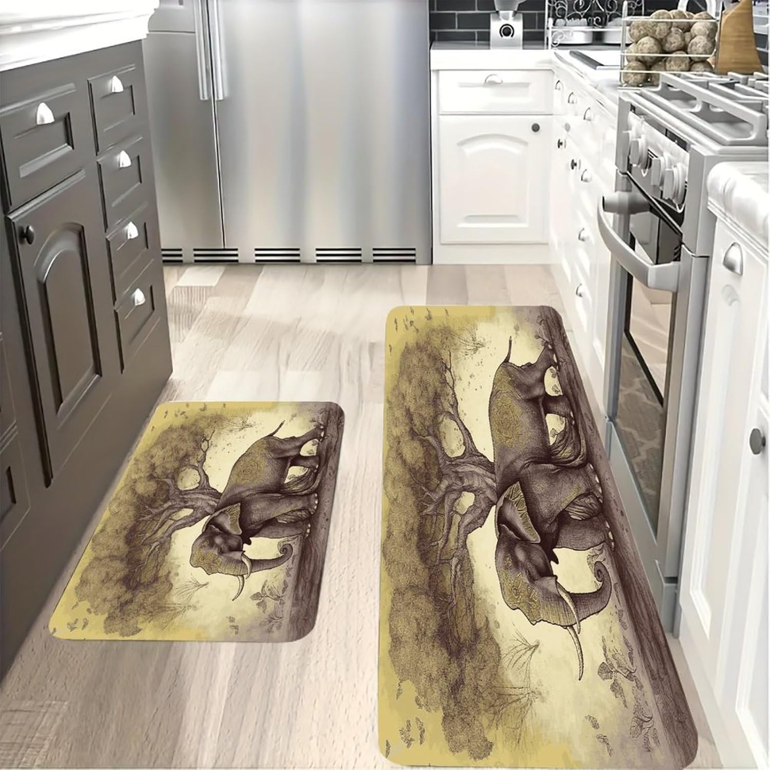Elevate your standing experience with our 2-piece Cushioned Anti Fatigue Mat set, designed to blend comfort, functionality, and style across every room in your home. As a Comfort Desk Mat, it also eases the pressure of long workdays, making it a must-have for remote workers and home chefs alike.The Cushioned Anti-Fatigue Non-Skid Rug core offers targeted support that reduces strain on your feet, knees, and lower back—perfect for anyone who spends hours standing. Unlike thin, flimsy alternatives, this Asian Elephant with Tree Kitchen Rug uses pill-resistant flannel that stays soft, even with daily use. It works equally well as a Non Slip Comfort Standing Mat in the laundry room, turning tedious folding and sorting tasks into a more comfortable routine.With its warm, inviting aesthetic, this Farmhouse Anti Fatigue Mat fits seamlessly into rustic, farmhouse, or modern home decor. Use the Cushioned Kitchen Rug as a soft landing spot by your bathroom shower, or bring it outdoors to create a comfortable standing area for gardening or grilling. Every detail is crafted to fit your busy lifestyle, from the easy-clean fabric to the versatile sizing that adapts to any space.