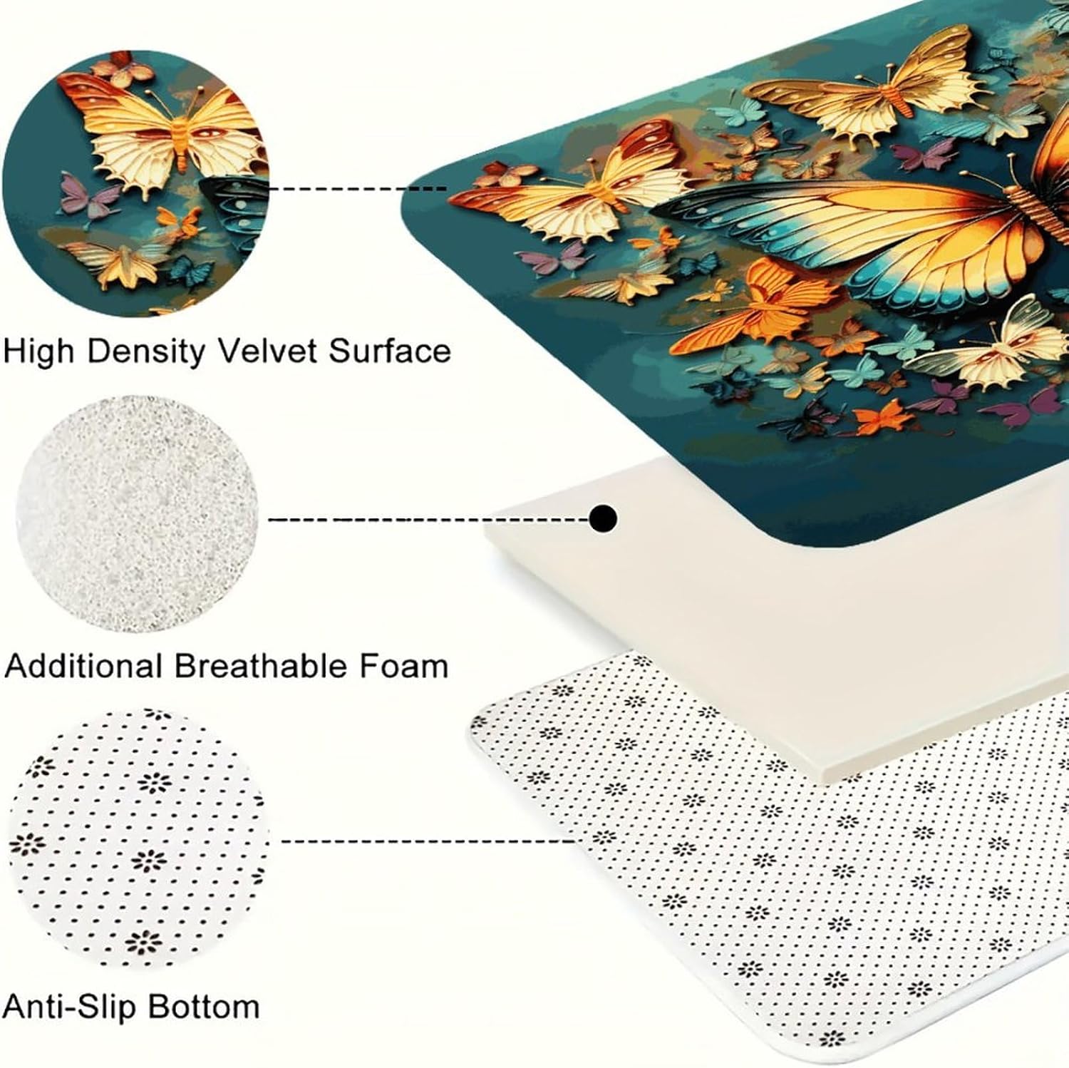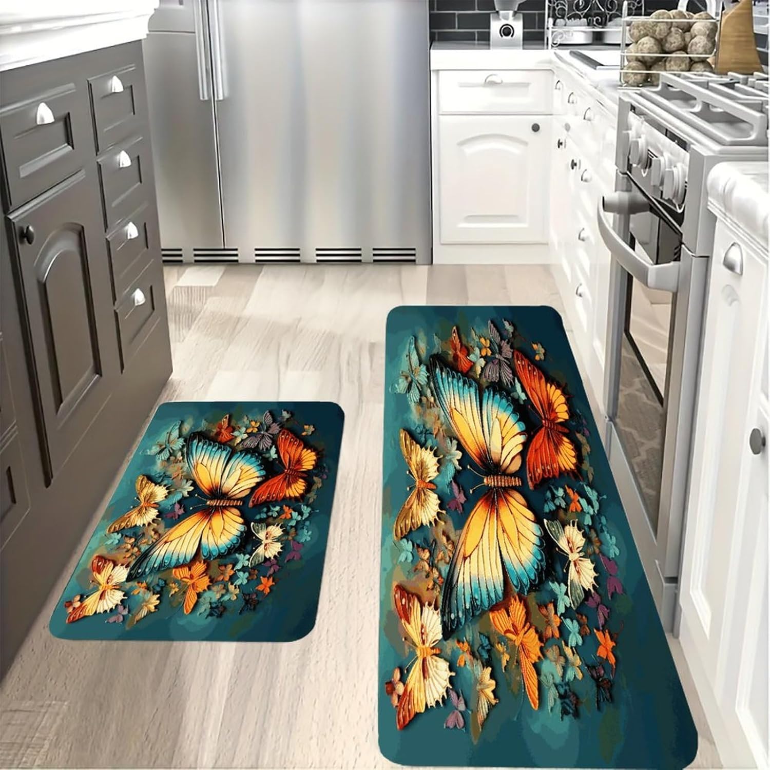 Elevate your standing experience with our 2-piece Cushioned Anti Fatigue Mat set, designed to blend comfort, functionality, and style across every room in your home. As a Comfort Desk Mat, it also eases the pressure of long workdays, making it a must-have for remote workers and home chefs alike.The Cushioned Anti-Fatigue Non-Skid Rug core offers targeted support that reduces strain on your feet, knees, and lower back—perfect for anyone who spends hours standing. Unlike thin, flimsy alternatives, this Colorful Butterfly Embroidery Paintings Kitchen Rug uses pill-resistant flannel that stays soft, even with daily use. It works equally well as a Non Slip Comfort Standing Mat in the laundry room, turning tedious folding and sorting tasks into a more comfortable routine.With its warm, inviting aesthetic, this Farmhouse Anti Fatigue Mat fits seamlessly into rustic, farmhouse, or modern home decor. Use the Cushioned Kitchen Rug as a soft landing spot by your bathroom shower, or bring it outdoors to create a comfortable standing area for gardening or grilling. Every detail is crafted to fit your busy lifestyle, from the easy-clean fabric to the versatile sizing that adapts to any space.