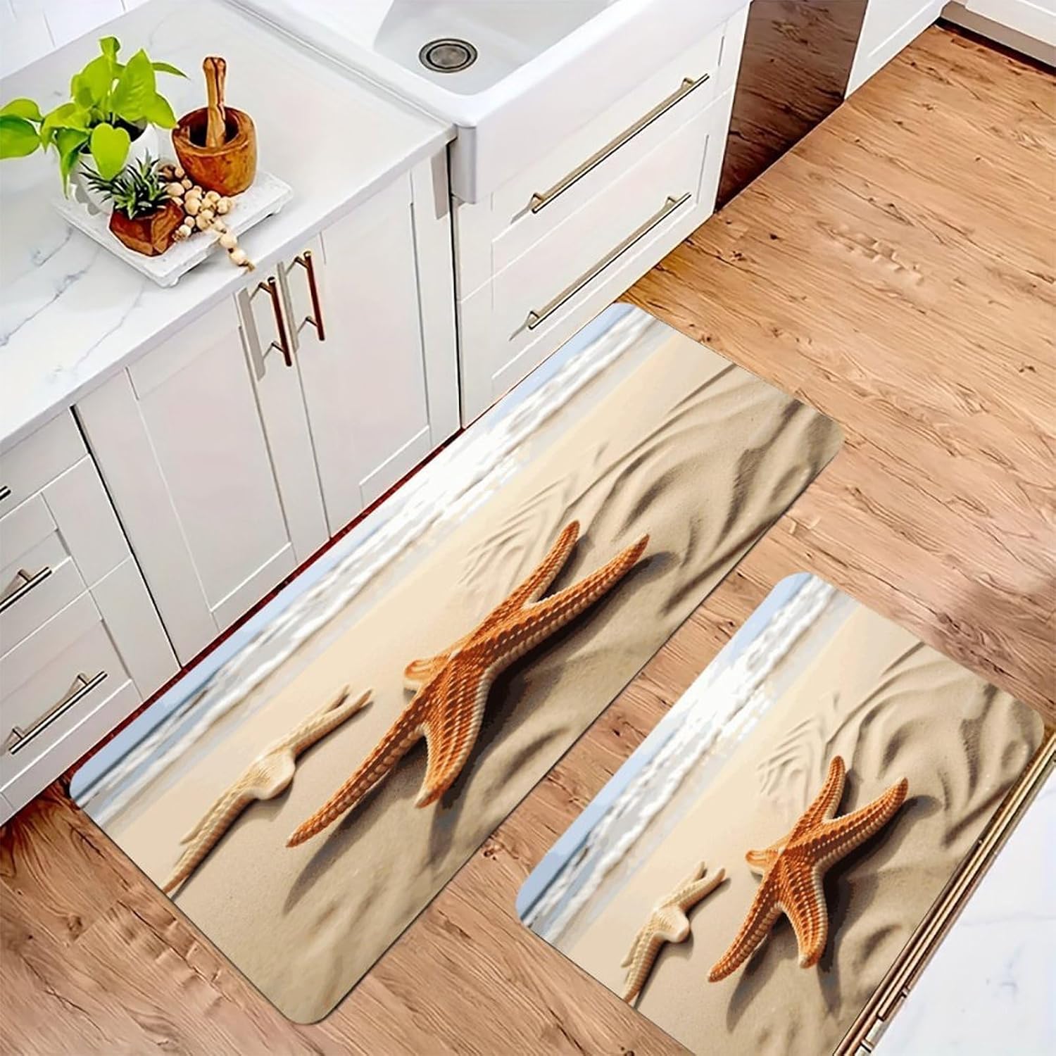 Step into instant comfort with our 2-piece Cushioned Anti Fatigue Mat set, designed to transform every standing moment into a relaxing experience. As a Comfort Desk Mat, it also eases the strain of long workdays, making it a versatile addition to any home.The Cushioned Anti-Fatigue Non-Skid Rug core offers plush support that hugs your feet, reducing the tension that comes with standing for hours. Unlike thin, flimsy alternatives, this Starfish on The Sand Beach Landscape Kitchen Rug is made with pill-resistant flannel that stays soft and neat through repeated use. It doubles as a Non Slip Comfort Standing Mat in your laundry room, taking the stress out of folding clothes or loading the dryer.Perfect for modern and rustic spaces alike, this Farmhouse Anti Fatigue Mat combines style with practicality. Use the Cushioned Kitchen Rug in your bathroom for a soft step out of the shower, or bring it outdoors for a comfortable spot to garden. Every detail is crafted to fit your busy lifestyle, from the easy-to-clean fabric to the multi-room functionality that makes this set a household staple.