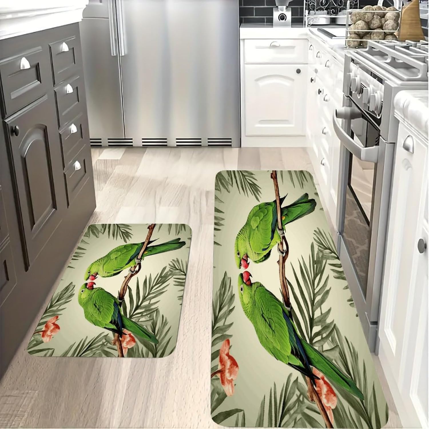 Elevate your standing experience with our 2-piece Cushioned Anti Fatigue Mat set, designed to blend comfort, functionality, and style across every room in your home. As a Comfort Desk Mat, it also eases the pressure of long workdays, making it a must-have for remote workers and home chefs alike.The Cushioned Anti-Fatigue Non-Skid Rug core offers targeted support that reduces strain on your feet, knees, and lower back—perfect for anyone who spends hours standing. Unlike thin, flimsy alternatives, this Couple Parrots Olive Kitchen Rug uses pill-resistant flannel that stays soft, even with daily use. It works equally well as a Non Slip Comfort Standing Mat in the laundry room, turning tedious folding and sorting tasks into a more comfortable routine.With its warm, inviting aesthetic, this Farmhouse Anti Fatigue Mat fits seamlessly into rustic, farmhouse, or modern home decor. Use the Cushioned Kitchen Rug as a soft landing spot by your bathroom shower, or bring it outdoors to create a comfortable standing area for gardening or grilling. Every detail is crafted to fit your busy lifestyle, from the easy-clean fabric to the versatile sizing that adapts to any space.
