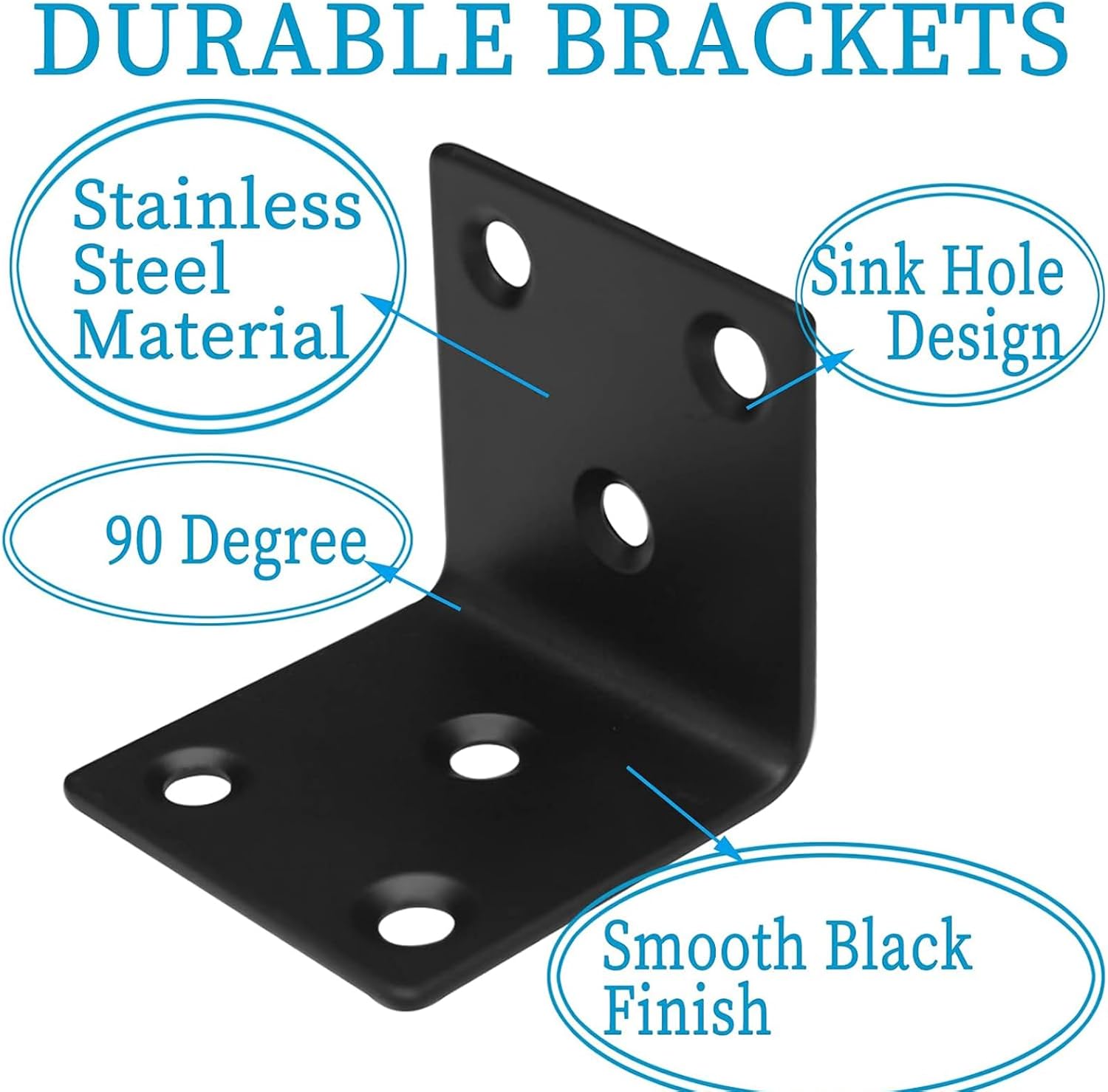 40Pack Stainless Steel Angle Brackets, Heavy Duty 1.5Inch L Bracket for Wood, Metal Corner Bracket Joining Corner Brace for Fixing and Repairing Broken Wooden Furniture Fence Barn Door Bed Frame Closet Door and Shelves Specifications: L Bracket Size: 1.5”x1.5”(LxW) Thickness: 1/16INCH/2MM Number of Holes: 6 holes Material: High Quality Stainless Steel Style: 90Degree Corner Brace Brackets Finish: Black Finish Shape: L Shape Installation Method: Screw-In Features: Constructed from high quality stainless steel to ensure quality and longevity Brush finish for weather resistance and rust resistance This stainless corner brace has been polished and is very smooth and will not scratch your hands Available countersunk holes allow you to mount quickly and easily, smooth fixing surface 50MM wider bracket provides high load capacity and will not bend Applications: Corner Brackets are widely used for wood furniture repairing and DIY project; Such as: joining furniture joints corner board, repairing fencing or timber, fixing wooden bed and bookshelf frame, reinforcing wobbly furniture and garden shelf, furniture making, strengthen something, and so on