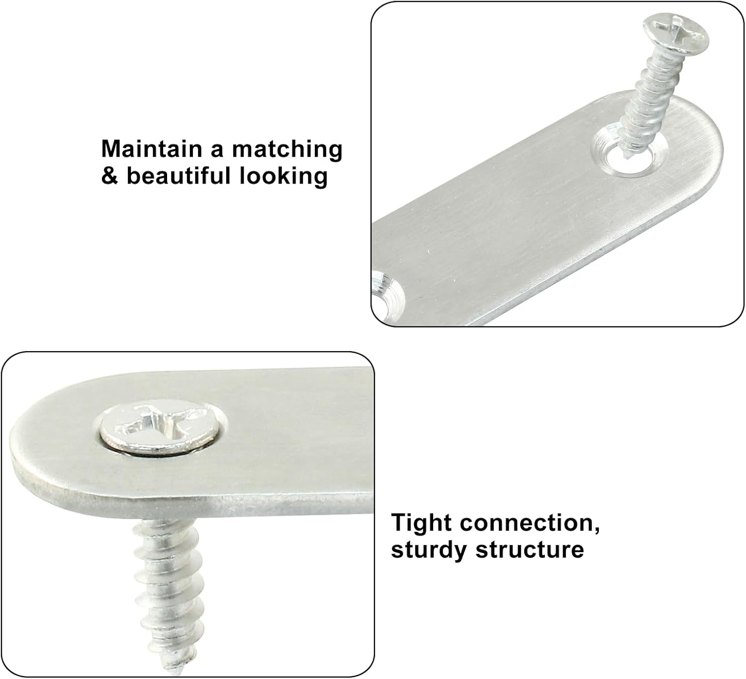 Feature Specifications: Name: Flat Corner Brace Color: Silver Material: stainless steel Size: 2.4 x 0.6 x 0.08 Inch Package Included: 30 x Flat Corner Brace Warm Tips: All dimensions are measured manually and may be 1 - 2mm deviated. There may be some color aberration due to lighting problems.