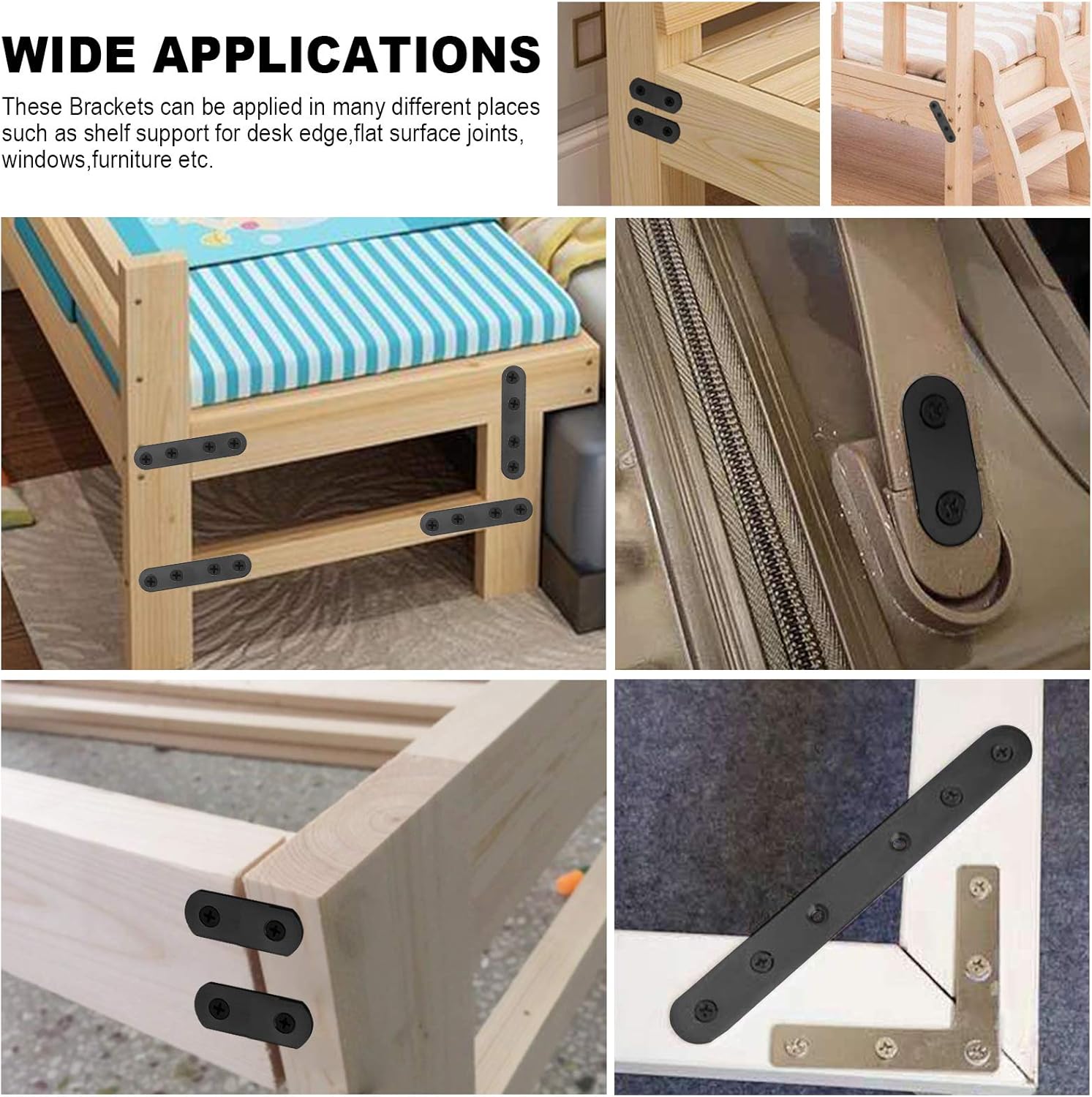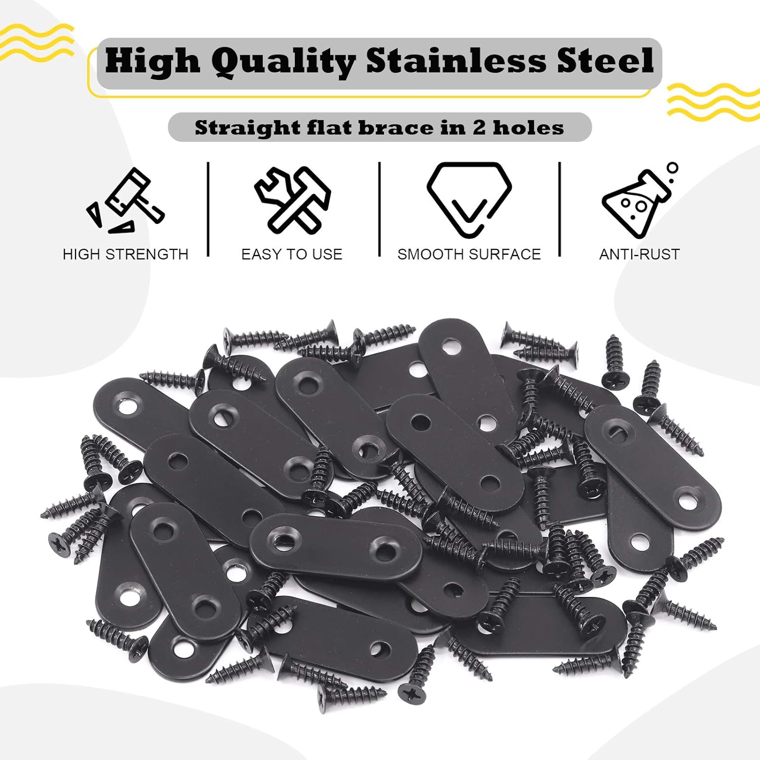 Hilitchi Straight Bracket Stainless Steel Black Straight Corner Braces Straight Flat Brace Mending Repair Flat Plates with Screw (40mm, 20 Pack) SAVE YOUR TROUBLE----- Furniture used for a long time would gradually getting old and begin to wobble, you just need a few pieces of our black corner brackets, your furniture could still use for a long time. SPECIFICATIONS -Material : Stainless Steel ( black oxide coated surface) -Thickness : 2mm -Finish : Black oxide coated -Installation Method : Screw fixing Package Includes 20 x Flat Braces(40mm) 45X M4x16 screws