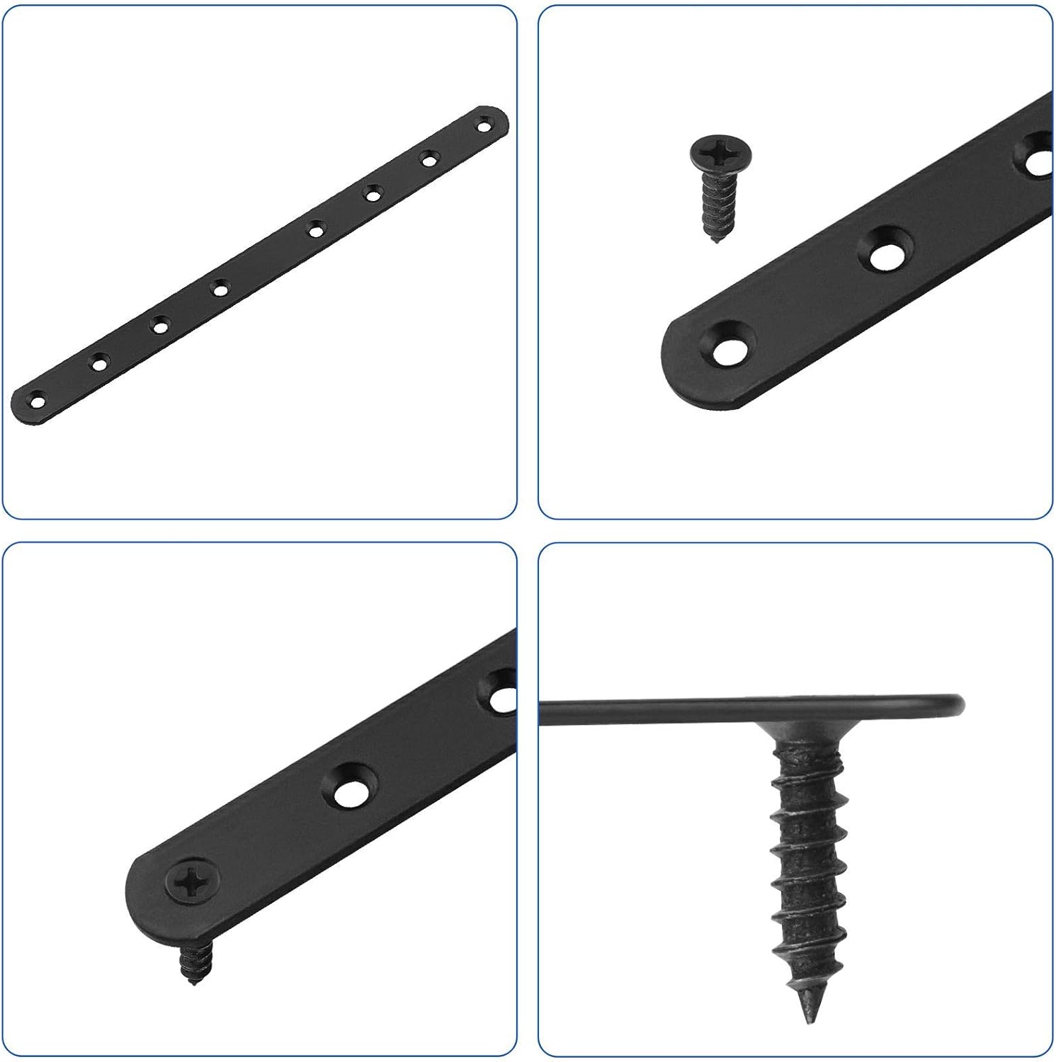 12PCS 6.7” Black Straight Bracket, Furniture Straight Brackets Heavy Duty Mending Repair Plate Bracket Connector for Wooden Tables, Windows, Chairs, Cabinets, Drawers Feature: ►HIGH QUALITY: ---Straight Brace are made of cast iron with high hardness, rust-resistant corrosion resistance, sturdy and durable, can serve for a longer time ►RUSTPROOF AND DURABLE ---Black oxide coated will not rust, build to resist daily scratches, corrosion and tarnishing connecting furniture joint corner board; Reduce the noise of shaking ►SMOOTH SURFACE ---Smooth surface without burrs, no harm to the hand ►HEAVY DUTY SUPPORT ---A pair of heavy duty repair fixing bracket can support heavy weight up to 60 lb; very strong and durable, will not deform under heavy load Specification Material : iron Overall Size: 170x38x3mm/6-5/8x1-1/2x1/8"(LxWxT) Thickness : 3mm/1/8" Mounting hole diameter: 5mm /1/5" Finish : Brushed Steel Installation Method : Screw fixing Wide application: Chairs Beds Chests Screens Windows Wooden table Wooden bed Shelf Furniture Fastening chair TV wall mount Bedframe Plywood Particleboard Box Package Includes 12 x Flat Braces