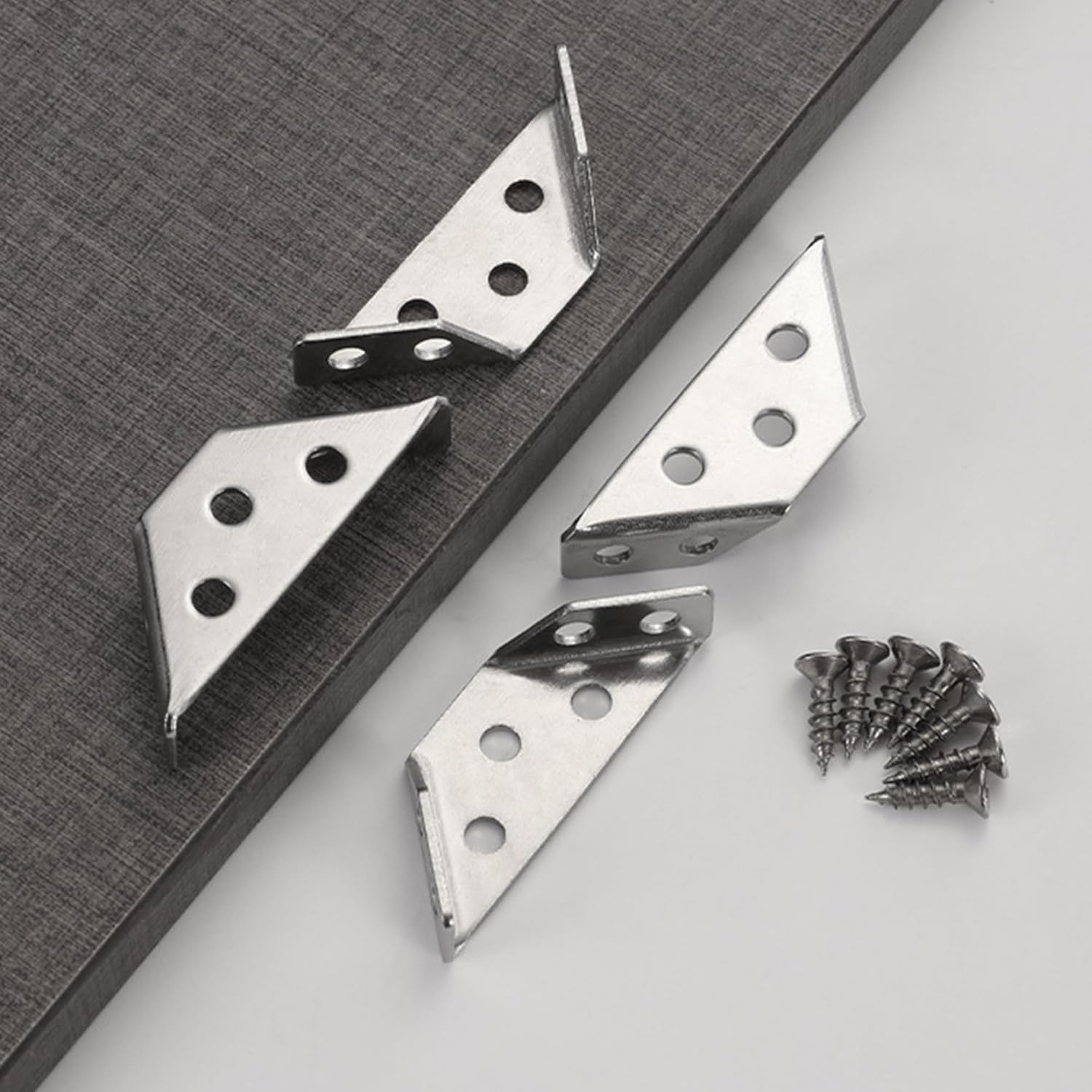 Universal Furniture Corner Connector, 10/20/30/50Pcs 304 Stainless Steel Corner Brace with Screws, Heavy Duty Angle Shelf Brackets for Wood, Trapeziform Corner Brace, Furniture Hardware Specifications:Name: Universal Furniture Corner ConnectorMaterial: 304 Stainless SteelLength:Approx.67mm/2.63"(As the Picture Show)Package Includes:10/20/30/50 Pcs Triangular Corner Bracket with ScrewsNote:1. Due to manual measurement, please allow a slight error.2. Due to the different recognition of screen monitors, please allow slight color difference. Have a nice day!3.If you have any questions, please email us first.Thanks for your understanding and happy shopping!