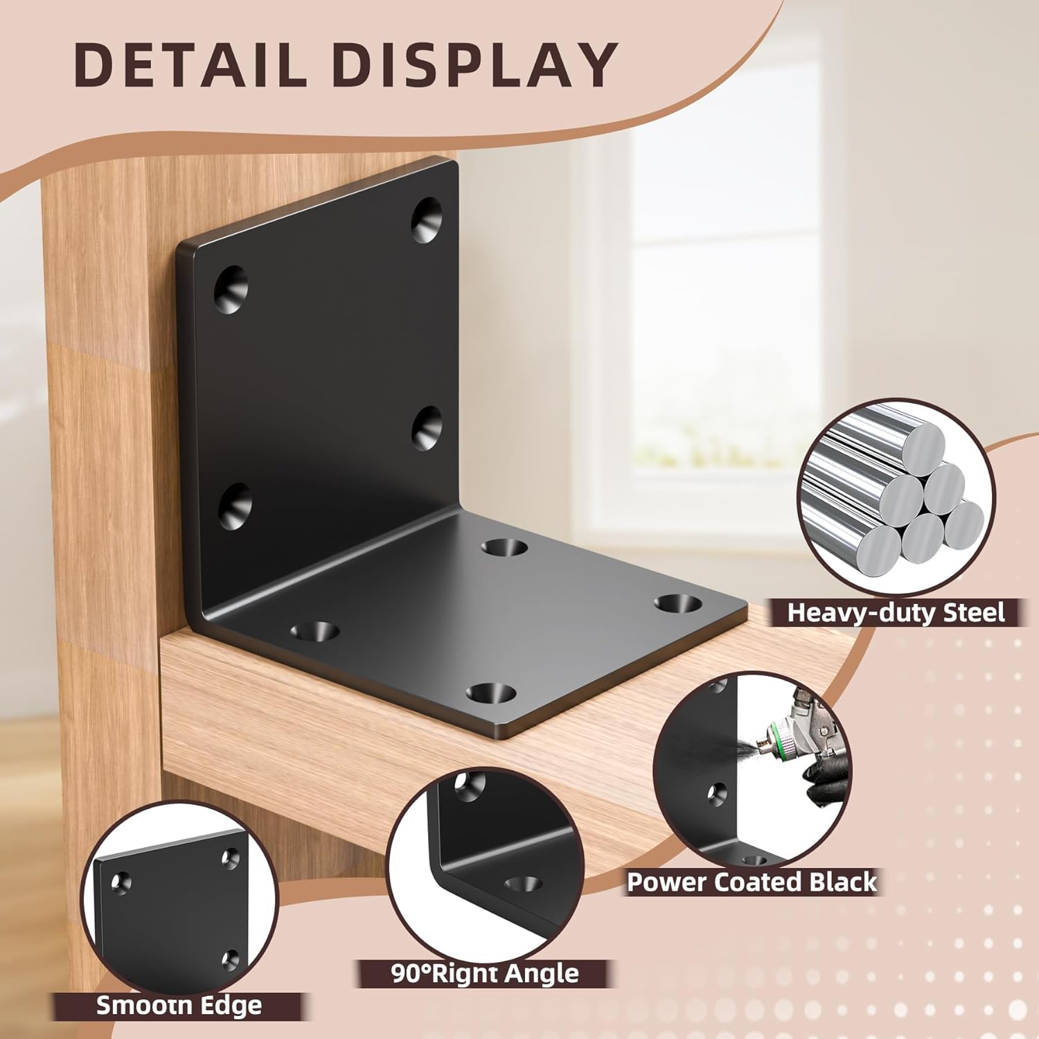 | Included Components | 2 pcs 6" X 6" X 5" Heavy Duty Steel Corner Brackets |