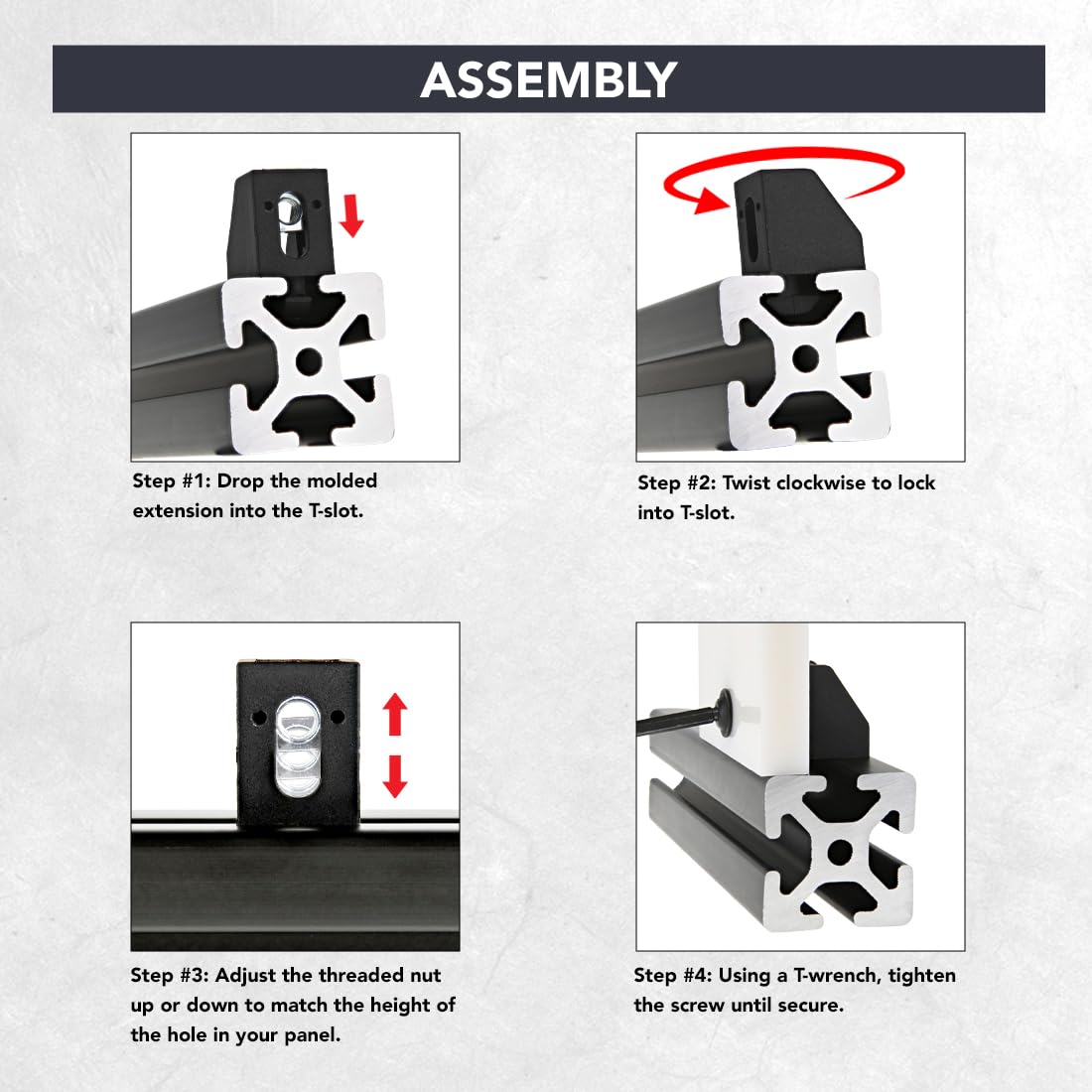 The economy drop-in T-nut is a fastening option that loads either from the profile ends or side, which is helpful for applications where the ends are inaccessible. It is a cost-effective fastener that provides infinite positioning along the profile T-slot.