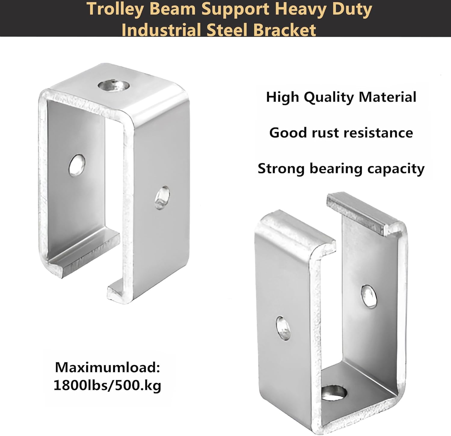 For all 1-5/8 "strut channels, heavy steel support bracket for cantilevered roller shutter doors, hanging boxing punching bags Strut channel brackets provides stable support, with a maximum load capacity of up to 1300 pounds These Channel Trolley Track Hanger Brackets made hanging your tolley system a breeze.The brackets hold the away from the ceiling, so end stops and other attachments don't present clearance problems. And, the brackets do not obstruct the trolley movement in any way. Package Contents:Track Intermediate Support Hanger4pc, 3/8" x 2-1/2" Bolts and 3/8" Nuts Color Galvanized Material Iron