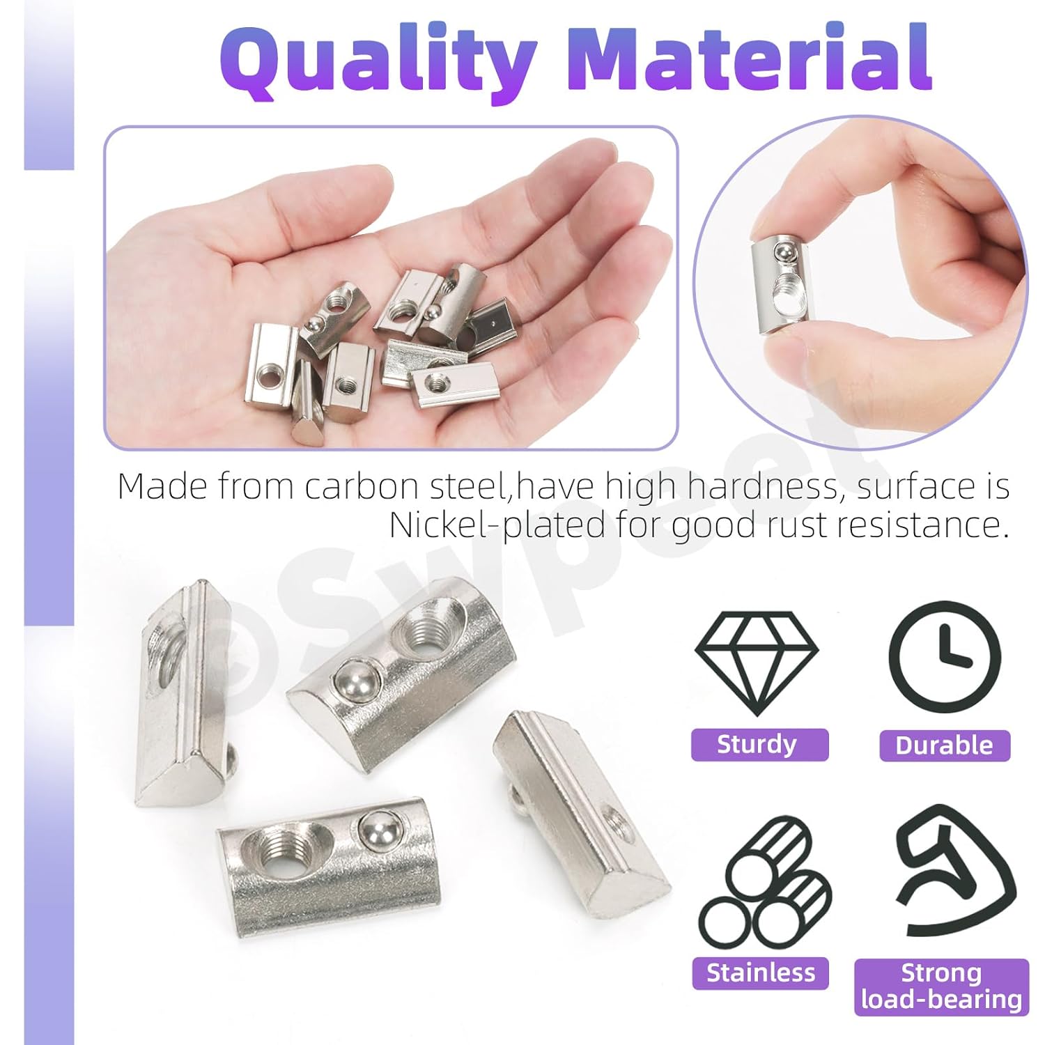 👑 Swpeet 48Pcs 4040 Series Carbon Steel Nickel Plated Roll-in Spring T Nut M4 M5 M6 M8 Assortment Kit, T Slot Nuts, Roll Ball Elastic Nuts for 4040 Series Aluminum Extrusion Profile Rail 👑 Why Choose Us? 🏅 1.Premium Material ✨ Made of carbon steel, nickel plated on the surface, Roll-in Spring T Nuts are resistant to rust, corrosion, and have high strength. Serve for a long time. 🏅 2.4 Sizes 4040 Series T-slot Nuts ✨ M3 M4 M5 M6 T Nuts suitable for 4040 Series Aluminum Extrusion Profile Rail. Multiple sizes to meet your needs for fastening and adjusting positions 🏅 3.Wide Applications ✨ 4040 Series Roll-in T-Slot Nut is compatible with a wide range of T-slot accessories. Widely applied in 3D printers, CNC routers, CNC cutters, robot projects, 3D engraving machines, etc. 🏅 4.Note ✨ Please confirm the depth of the groove before placing an order. If the groove of the profile is deep, it is recommended to use a nut with shrapnel. 👑 Specifications ✨ Product Name: Roll-in Spring T Nut ✨ Material: Carbon Steel ✨ Exterior Finish: Nickel-Plated ✨ Size: M3 M4 M5 M6 ✨ Color: Silver 👑 Package Includes: ✨ 12Pcs -------- 4040 Series M4 Roll-in Spring T Nut ✨ 12Pcs -------- 4040 Series M5 Roll-in Spring T Nut ✨ 12Pcs -------- 4040 Series M6 Roll-in Spring T Nut ✨ 12Pcs -------- 4040 Series M8 Roll-in Spring T Nut ✨ In Total 48Pcs