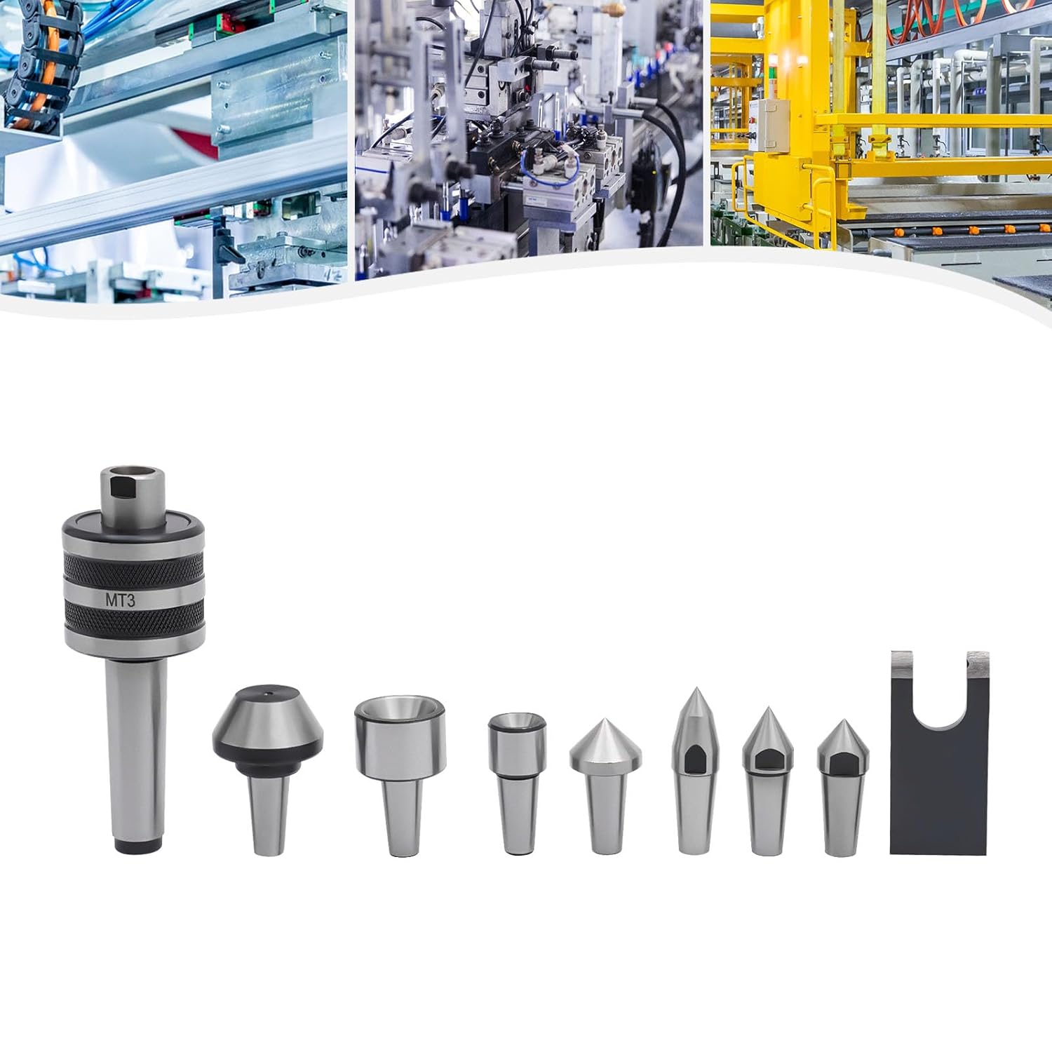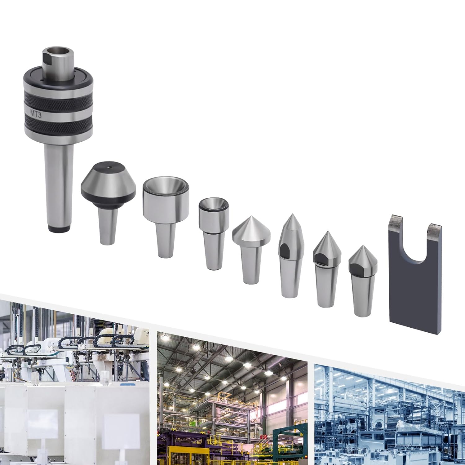 Description Our MT3 live center has the characteristics of high precision, large bearing capacity, and high rigidity, which is very beneficial for precision machining and strong cutting. With the help of the positioning of the tip, the processed parts can achieve high dimensional accuracy(0.0004"). It is an indispensable accessory in today's mechanical processing. Application It is specially designed for medium-speed precision machining lathes with medium loads and is suitable for high-speed lathes, CNC lathes, and general manual lathes. Specifications Model: MT3 Style: Modern Material: 40CR Steel Process: Quenching, Precision Machining Color: Black, Silver Hardness: About 45 Point: 60°/75°/90° Rotational Speed: About 3000rpm Accuracy: 0.01mm/0.0004in Box Size: 210*340*80mm/8.3*13.7*3.1in Package Size: 34*22*8cm/13.4*8.66*3.15in Gross Weight: 2.6kg/5.73 lbs Package Included 1 Set* MT3 Live Centers Notes 1.The tip of this live center is not replaceable. 2.It is not recommended that you process wood, which is easy to produce sawdust, affecting the use. 3.Please allow the slight color difference caused by the shooting light and 1-3cm error due to manual measurement, and make sure you do not mind before you order.