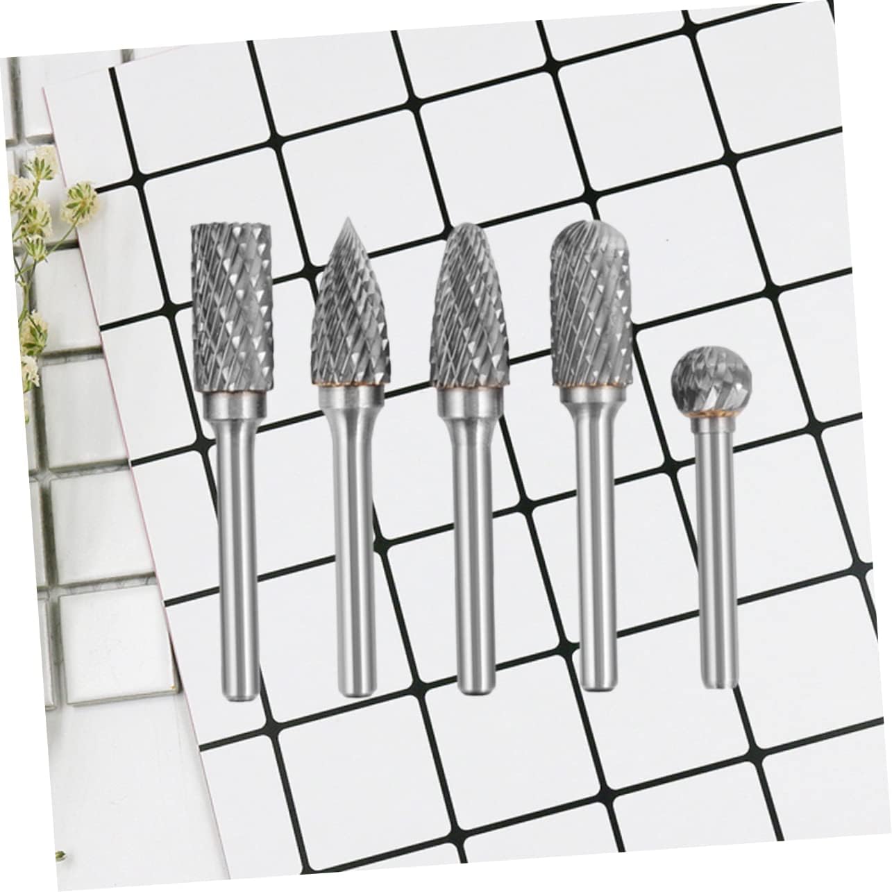 Package List 5 x rotary file Characteristics - Color: Silver - Size: Approx. 1.2x1.2x6.5cm - Material: Tungsten Steel - This is a 5 piece set of Tungsten Steel metal cutting burrs rotary bits. - They are great for engraving, wood working, cutting, grinding, deburring, reaming, and much more rotary burr. - These solid high- steel routing bits / burs are tough rotary burr set. cutting burr bits - These small metal cutter burr bits are . - These metal cutter burr bits can be used on all types of metal, wood, stone, porcelain, sheet metal, plastic, fiberglass, and more.Goods Descriptioncutting burr bits This is a set of 5 pieces design Tungsten Steel cutting burs.rotary bits This 6 pcs burr set includes all of the most burrs shapes and sizes for cutting, carving, engraving, notching, grinding, grooving, routing, cnc milling, and more