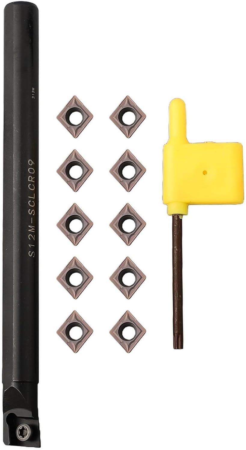 Features:and Made of - materials, Suitable for: semi-finishing, finishingMaintain tight tolerances and excellent performanceUsing - steel, long service life, reducing the cost of using toolsHigh grip, strong resistance, and obvious speed advantages in large-scale cutting and processingEasy to replace, only need a wrench to complete the replacement of for blades and gasketsIt is very practical in various processing environments, even in very dirty environments, such as cast iron.for grinding, manual inspectionSuitable for most machines and works wellProduct parameters:Turning tool post model: S12M-SCLCR09Total length: 150mmMaterial: carbon steelCutting edge angle: 95°Square handle (W * L): 12 * 9mmTotal length: 150mmInsertion style: CCGX, CCMTInsert size: 32.51, 32.52Cutting direction: right handBlade model: CCMT09T304 (CCMT32.5)Blade material: cemented carbidePackage list:1 *S12M-SCLCR09 turning tool holder10 *CCMT09T304 blade1 *Wrench