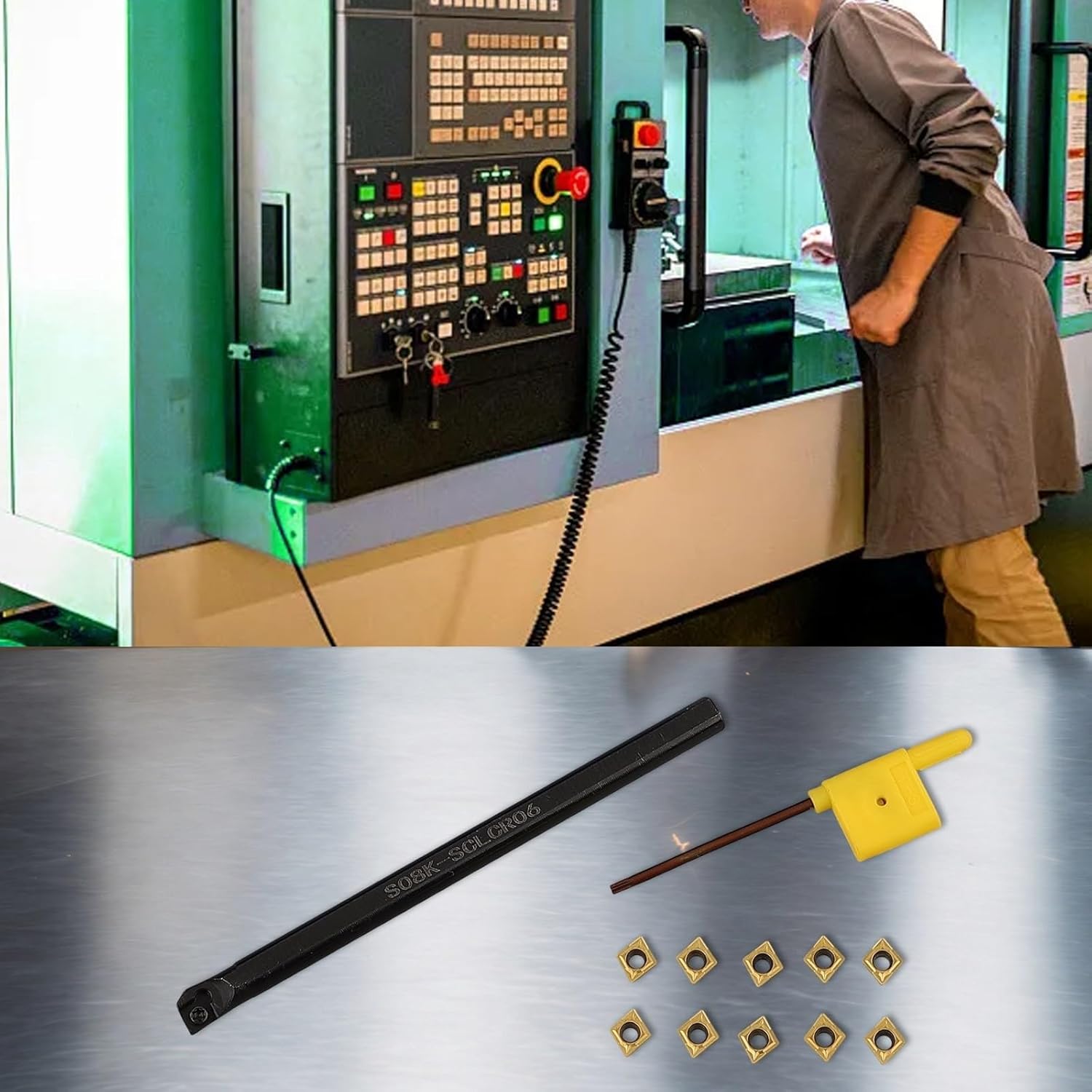 Product description Features:* and * Maintaining tight tolerances for unparalleled performance.* The accessories have rigidity and long life, which reduces the user's tool cost.* High grip strength, strong resistance, obvious speed advantage in large margin cutting and processing.* User-friendly clamping and replacement for methods require only wrench to complete blade and pad replacement.* Practical and for versatile in machining environments, it has good characteristics even in very dirty environments such as cast iron.Specification:Turning tool holder model: S08K-SCLCR06Turning tool holder material: alloy steelShank diameter: 8mm (approx.)Handle length: 125mm (approximately)Wrench: T8Accept for plugin: CCMT060204 (10pcs)Insert material: carbideApplicable to: semi-finishing, finishingPackage Included:1 x S08K-SCLCR06 bracket1 x T8 wrench10 x CCMT060204 insert Manufacturer Contact Information no