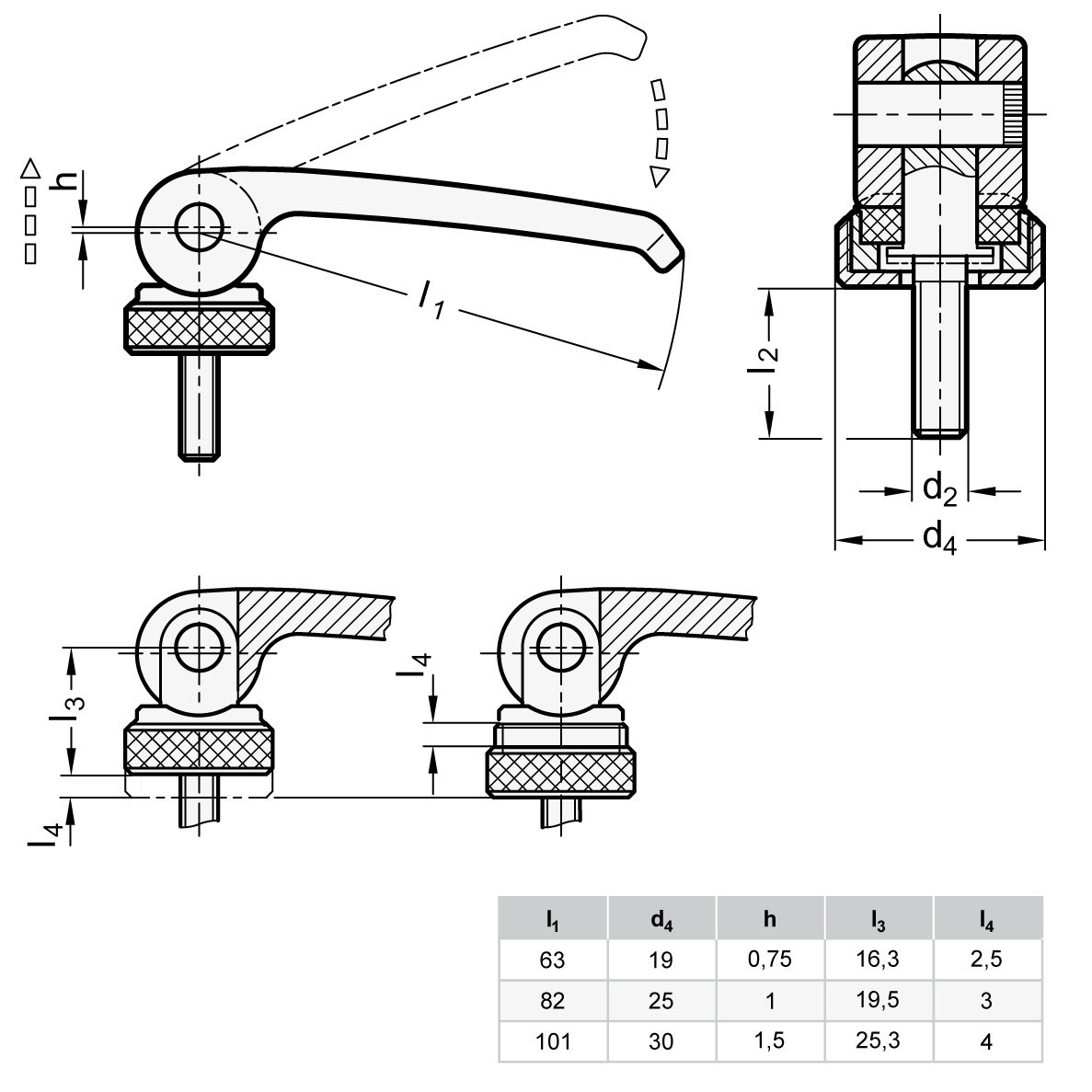 Eccentric tensioners GN 927, also known as eccentric lever or quick release, are used for quick clamping and release. Unlike clamping via a thread, they allow torque-free tensioning. The lever is designed so that the clamping movement of the lever over the max. clamping force is not possible. There are no loose parts, but all elements are connected to each other. With eccentric tensioners GN 927, clamping forces of up to 8 kN are achieved.