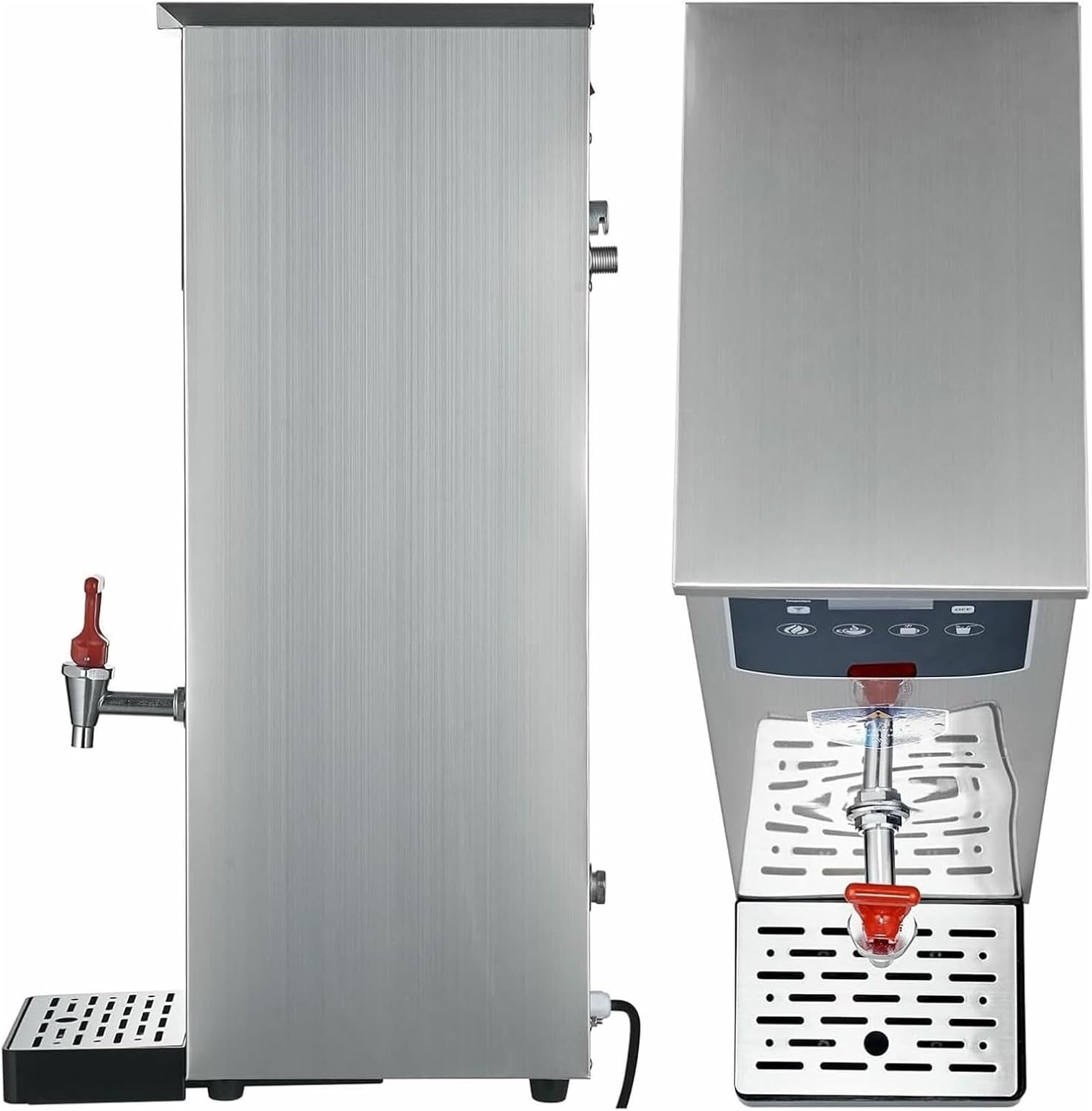 Meet the high-demand hot water needs of your business with our Commercial Instant Water Boiler. Engineered for efficiency, durability, and ease of use, it's the ideal choice for offices, staff canteens, and catering services.Product Highlights: Efficient High-Capacity Output:This boiler reliably supplies hot water on demand, making it ideal for serving large groups and handling peak service times without interruption. Powerful Instant Heating: A robust **2500W heating element** ensures water is heated rapidly. Coupled with the **convenient auto-fill system**, it guarantees a continuous and endless supply of hot water Intuitive Digital Control: The front-mounted **digital panel** offers simple and precise temperature adjustment, allowing you to perfectly tailor the water temperature for different beverages, including various types of tea and coffee Built to Last: Constructed from **durable 304 stainless steel**, this unit is made for the rigors of daily commercial use. The **drip-free tap** ensures a clean serving area, and the removable drip tray simplifies maintenance Adaptable for Various Uses: From morning coffee rushes in the office to all-day service in canteens, this versatile **hot water urn** provides a dependable source of hot water for drinks, soups, and food preparationTechnical Specifications:Color: SilverPower: 2500WVoltage: 110V/220V Capacity: 10L/20L/30LMaterial: 304 Stainless SteelFeatures: Auto-Fill, Digital Control, Removable Drip TrayTemperature Range: 40°C - 100°CProduct Dimensions (Model-Dependent):10L: 19 x 69 x 28 cm20L: 19 x 74 x 28 cm30L: 19 x 74.5 x 34 cmPackage Included1 * Electric Water Boiler1 * Drip Tray1 * Water Inlet Pipe1 * English Manual