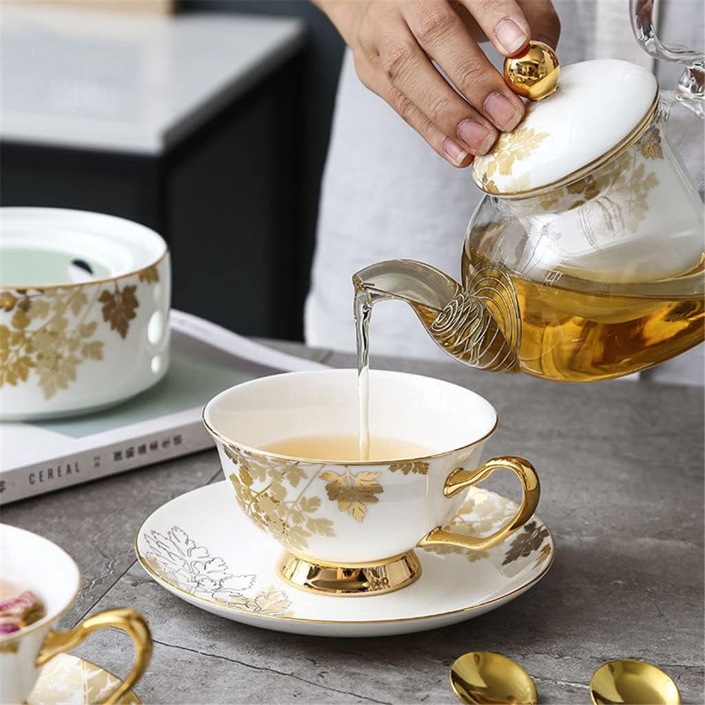 The porcelain is strong and warm, suitable for both cold and hot, warming the stomach and heart.It looks more beautiful and can be installed, thin and translucent high borosilicate glass.Built-in tea drain: the tea/fruit/residue can be used as a preliminary filter.Large-capacity design: cold and hot tea is suitable for all seasons, meeting the drinking needs of a family.This beautifully packaged tea set is the for friends or family who like tea.Name: Flower teapot set.Material: Iron/Glass/Porcelain.Packing: 1 * tea setTips:* The single product is a handicraft and may have slight flaws. Don't worry; it won't affect the quality at all.* It is best to wash by hand, because it is very delicate and can not be used in the microwave* If you receive damage, please feel free to usNote: The size is measured manually, with a slight error, for reference only