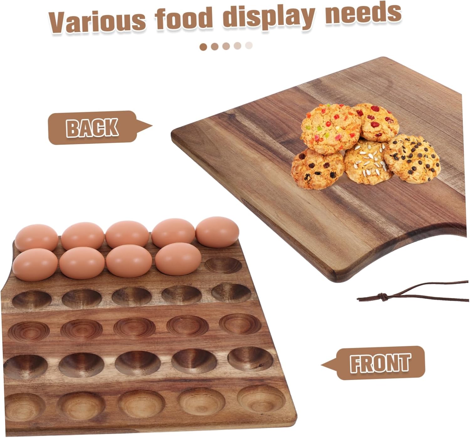 Package Include 1 x egg tray Features -Convenient and practical: the deviled egg tray with compartments allows for easy placement and storage of eggs, keeping your kitchen neat and organized devilled egg tray -Multifunctional design: this tray can be used not only for storing eggs but also as a dessert plate, meeting your various food display needs deviled egg platters -Size: 43.00X33.00X1.60cm/16.90X12.97X0.63in deviled egg plate wood -Spacesaving: the compartment design utilizes space, making your refrigerator or cabinet more orderly and saving space egg trays for deviled eggs -practical and reliable: made of wood, this tray is practical and reliable, resistant to deformation or damage over longterm use devil egg holder -Material:Wood devil eggs tray -Color:Coffee chicken egg holder -Versatile use: suitable for home kitchens, restaurants, banquets, and various other settings, making your daily life and gatherings more convenient egg holder for deviled eggsGoods Descriptiondeviled egg trays Its dual-sided design allows for multiple uses, making it a practical addition to any kitchen.egg platter The natural wood finish adds a rustic charm, while the carefully crafted compartments your eggs or treats stay in place during serving.deviled egg plates This versatile wooden egg tray is ideal for serving deviled eggs or desserts