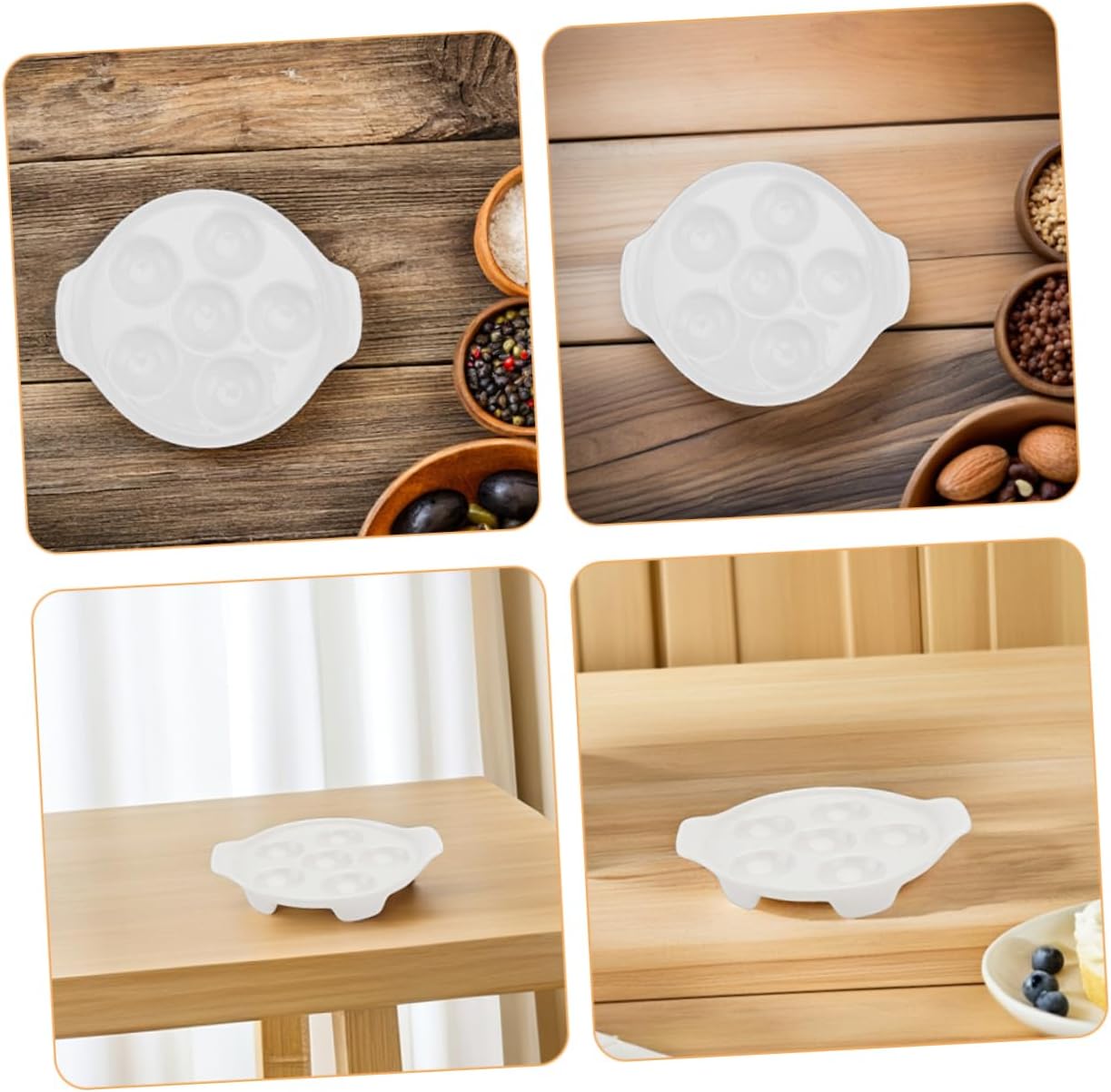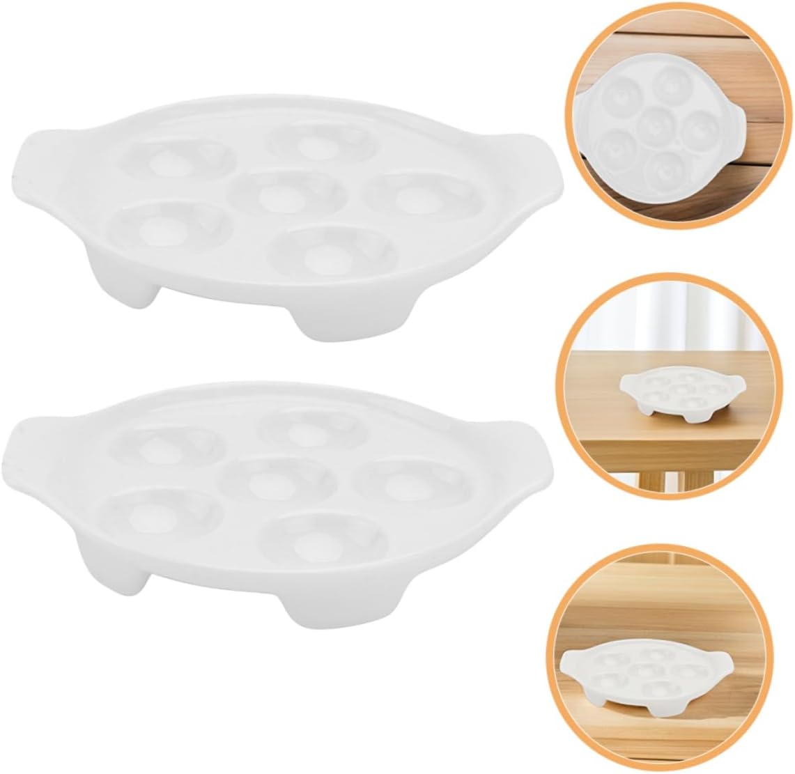 Package Include 4pcs snail dish Characteristics -Convenient cleaning: designed for easy cleaning, whether by hand or in the dishwasher, saving you time and effort porcelain eggs serving dish -Color:White catering tray for deviled eggs -Size:16.00X14.00X2.50cm/6.29X5.50X0.98in deviled egg holder tray - material: constructed from ceramic, ensuring it remains and reliable for years to come porcelain baking -Adaptable functionality: suitable for a wide range of culinary uses, from escargot to deviled eggs, offering great versatility deviled egg serving platter -Great for social events: ideal for family meals and social gatherings, providing a stylish serve your favorite dishes catering platter tray -Material: shrimp platter -Stylish presentation: the frenchstyle design enhances the presentation of your dishes, making every meal feel special snail dishwareGoods Informationdeviled egg display tray Ideal for serving escargot, octopus , and other delicacies, this platter adds a touch of elegance to any meal, making it ideal for special occasions and everyday use.porcelain baking Its unique design, complete with dual handles, makes it easy to transport from the kitchen to the dining table.porcelain eggs holder This ceramic serving dish is not only functional but also aesthetically pleasing