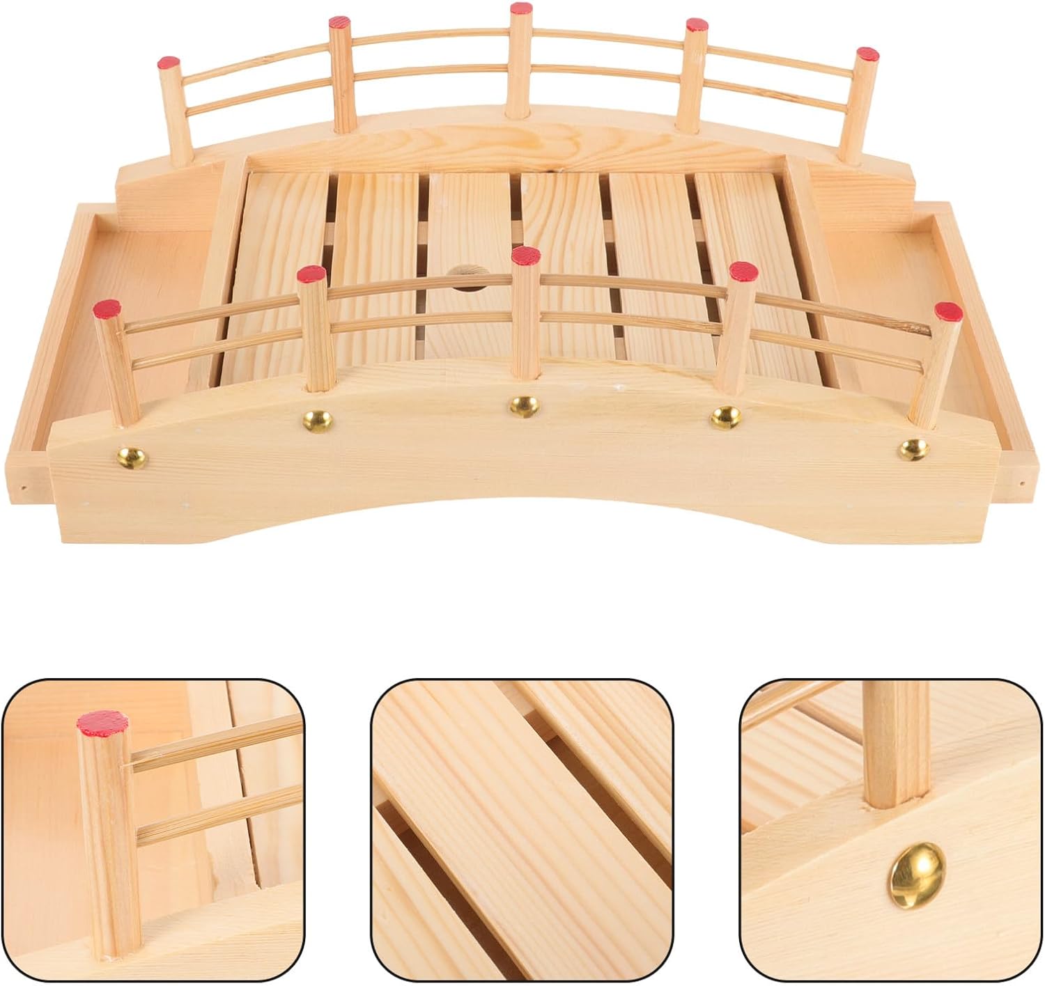 Package Include 1 x sushi tray Features -Product Info:Sushi Bridge Tableware -Material:Wood -Color:Khaki -Size:38.00X18.00X13.00cm/14.93X7.07X5.11in -You can use it to embellish the sushi plate, and decorate the food to some extend bridge dishes. -Japanese style dinner plate, and fashionable. Sushi Bridge tray is also perfect for restaurants or families, birthday parties, gatherings with friends, and camping sushi bridge serving tray. -Large-capacity design can hold food for several people. The tray makes a decoration for your food. Larger sushi containers for sushi, appetizer bridge food platter. -It can not only hold food, but also can be used as a table decoration sushi display bridge. -Manufactured with high-grade material, strong and . Creative wooden arch bridge Sushi boat tray, size perfect for any restaurant, dining event.Goods Descriptionbridge serving dish It can not only be used as a container for holding food, but also a good table decoration.sushi tray container Quality, strong and , no need to worry about damage.bridge platter This arch bridge type sushi plate has a large capacity and can hold food for several people