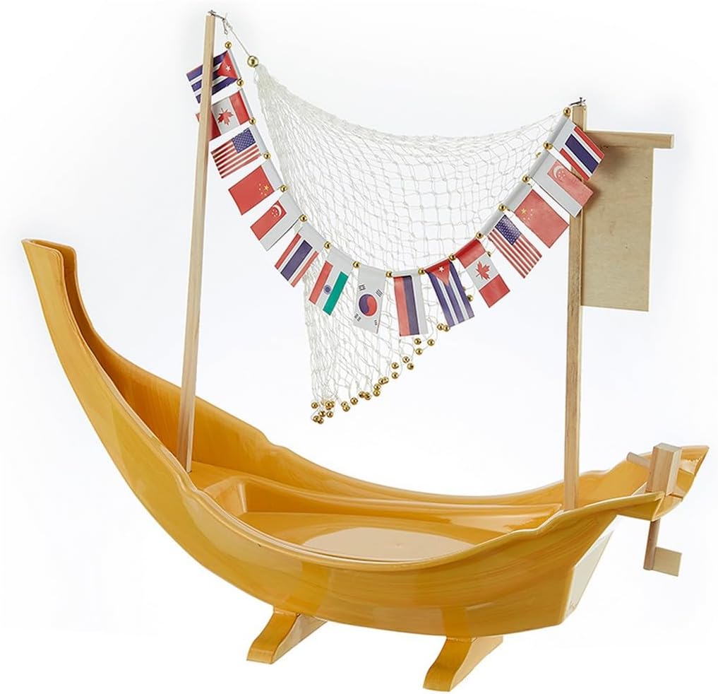 The Japanese Sushi Serving Boat is a beautifully designed, boat-shaped tray that elevates the presentation of sushi, sashimi, and other delicacies. Its unique shape brings an authentic and elegant touch to any dining setting, making it perfect for restaurants, parties, or home use. This tray not only serves as a stunning centerpiece but also incorporates a practical divider for sauces and accompaniments, enhancing its versatility for different serving needs. Measuring 24 inches in length, it offers ample space for a generous display of dishes. Constructed from durable, food-grade melamine, it ensures safety and ease of maintenance, being BPA-free and dishwasher-safe. This product masterfully blends traditional aesthetics with multifunctional design, catering to both the eye and practicality, making it an essential item for any lover of culinary arts.