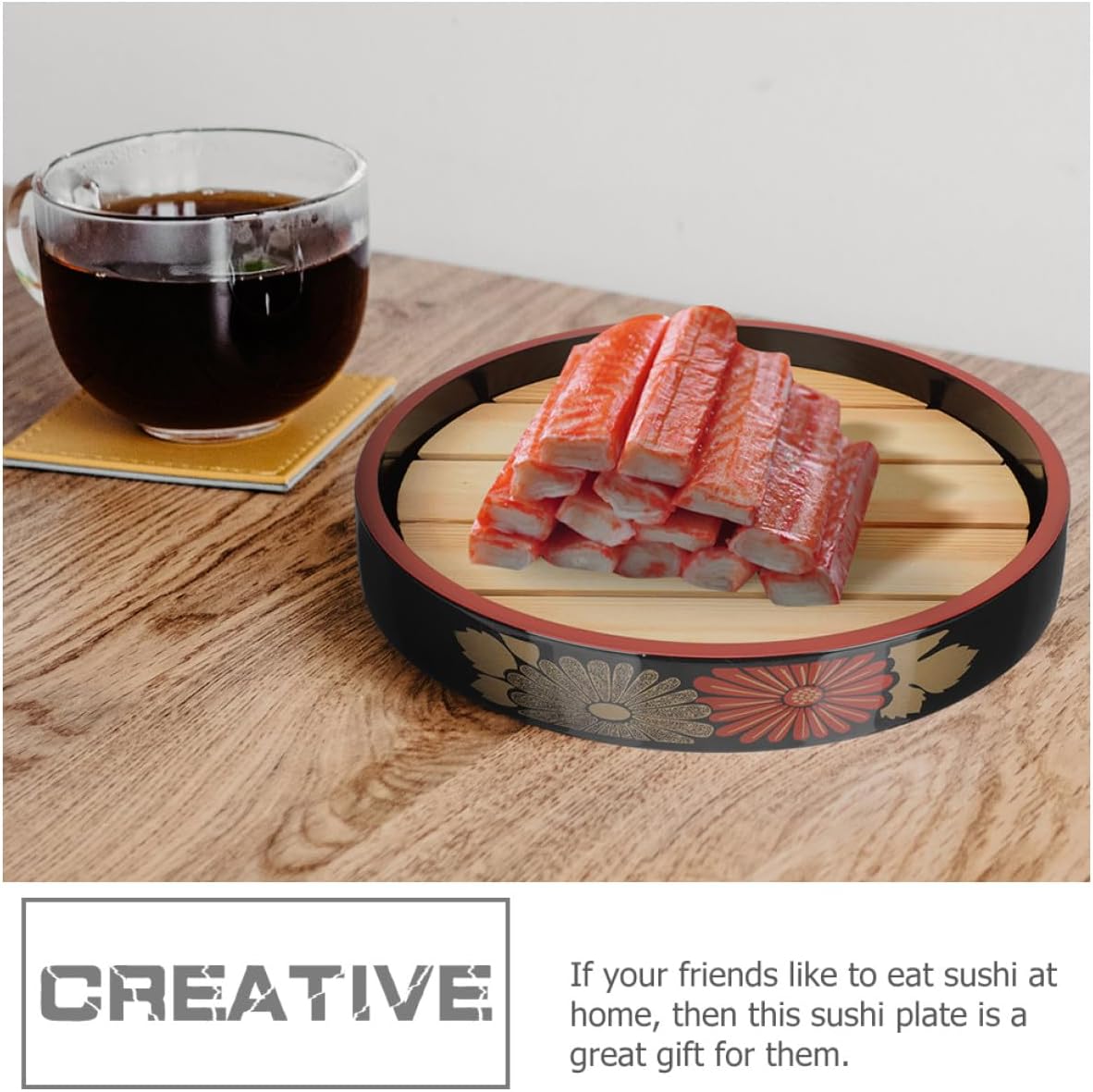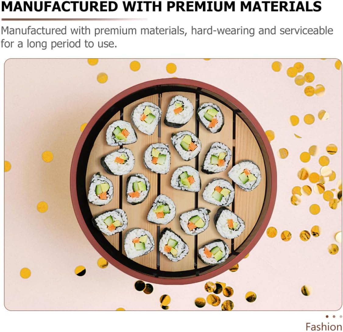 Package Include 1 x Sushi Plate 1 x Draining Board Features -Size(Draining Board):20cm/7.87in -Product Info:Salmon sashimi dish -Color:Multi -Material:Wood, Plastic -Size:24.50X24.50X5.00cm/9.63X9.63X1.97in -Manufactured with , hard-wearing and serviceable for a long period to use. -Elegant and simple appearance, it will add natural beauty to your desserts, appetizers, sushi and other delicacies round sushi plate. -This sushi plate with draining board is easy and convenient to clean, and easy to store when not in use sushi holder. -If your friends like to eat sushi at home, then this sushi plate is a great gift for them sushi display rack. -You can also use this unique and charming plate in restaurants, bars, hotels and bistros sashimi serving tray.Goods Descriptionsushi display rack With its classic and attractive design, you can make every meal to a special one.sushi boat tray Suitable for restaurants, hotels, special parties and family dinners.kitchen sushi dish Perfect for storing sashimi, sushi, and other food.sushi trays It has a simple design, but very practical in use, bringing much convenience to you.sushi dish This is a Sushi Plate with draining board, and practical to use