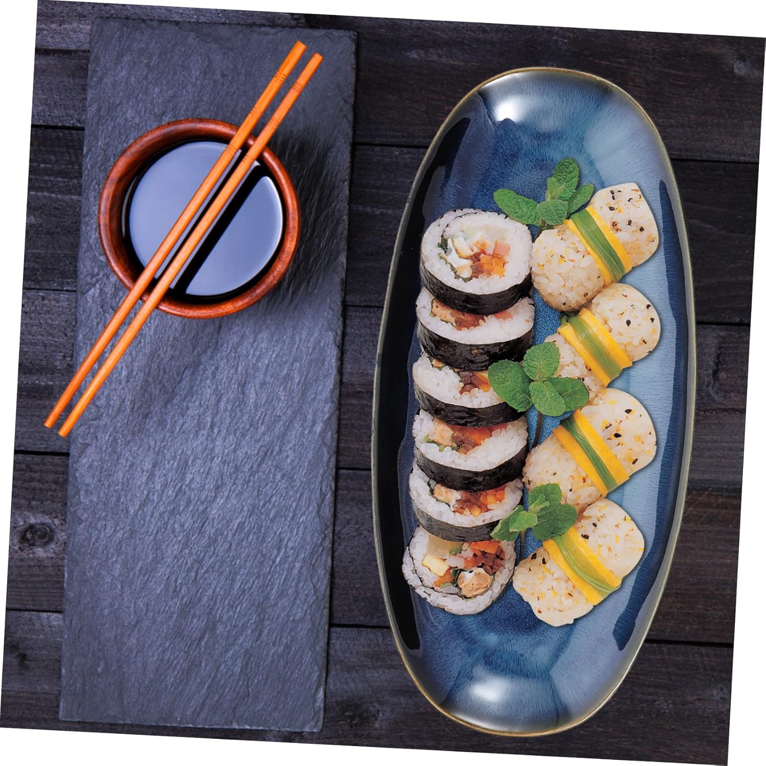 Package List 1 x Ceramic Sushi Plate Features - Color:Blue japanese ceramic plates. - Size: 34.7x16.8x3.5cm meat serving platter. - Material: Ceramic serving oval dishes. -Product Info:Sushi plate -Note:There may be color differences between different batches ceramics sushi tray. appetizers plate - Made from premium ceramic, detail and design serving tray for party. - An your friends, families decorative fruit plate - A versatile gadget to serve for snacks, nuts, dried fruits, appetizers, sauces party serving trays. - Perfect for family gatherings, parties, weddings, bars and restaurants, etc ceramic dinner platter - The plates features with sweet color, design, multi-function and porcelain trayGoods Descriptionporcelain tray Have you aesthetic fatigue to your home storage tray? Want to try some different plate to hold your food or fruit? Try our this ceramic dinner plate, very chic and stylish.Sushi Serving Tray More eye-catching and attractive than the routinist storage plates in the current market.porcelain snack tray You can use it for any occasions such as everyday use, family gatherings, parties, weddings, bars and restaurants