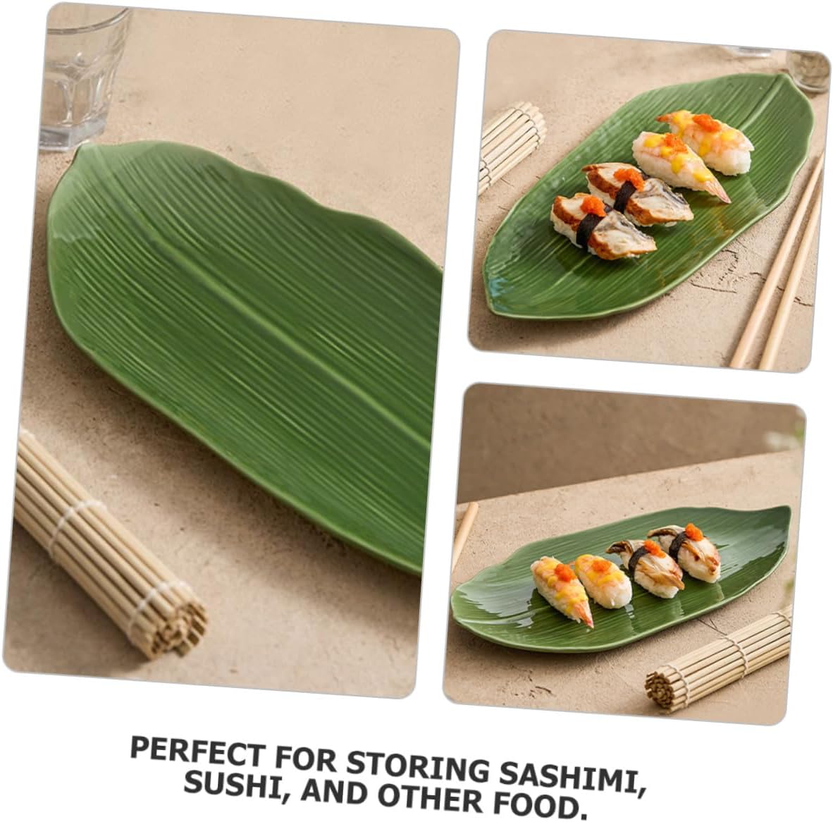 Package List 1 x food plate Features -Material:Ceramic ceramic appetizer plates -Size:37.40X17.00X3.50cm/14.70X6.68X1.38in sushi display plate -Product Info:Sushi plate -Color:Green dish tray - This plate is suitable for storage of various items, such as snack, dried fruit, nuts, etc sushi serving platter. - This serving dish can be placed in the kitchen, living room, bedroom and other places to store items Ceramic sashimi plate. - A great way to impress your dinner guests as you serve your or anything else you desire snack plate. - Adopting from ceramic material, which is lightweight, with and good workmanship home sushi plate. - You can fill it with snacks to give to your family and friends, or you can entertain them on the dining table serving tray with handles.Goods Descriptionfood serving tray Made of ceramic, very suitable for your longtime use.Ceramic Plate Looking for a sushi plate? Our sushi serving plate will be .ceramic appetizer plates The practical and portable size keeps its popularity, and also very decorative