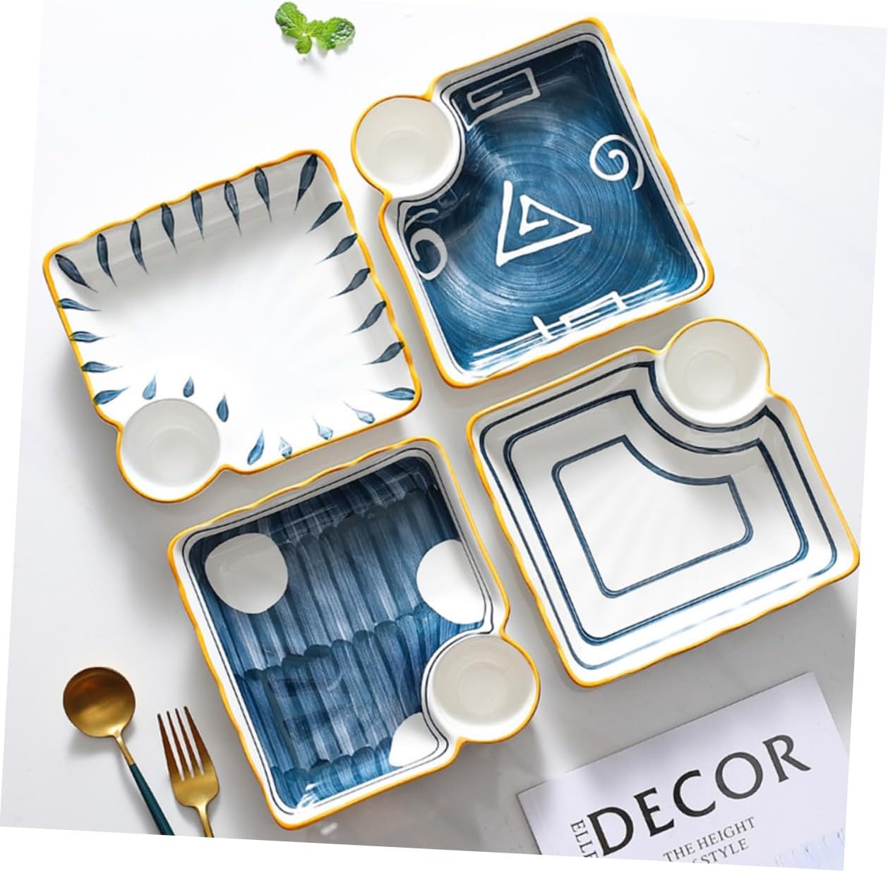 Package List 4 x Plates Characteristics - Size: 18.50X17.50X3.50cm/7.27X6.88X1.38in. - Color: Assorted Color. - Material: Ceramics. -Product Info:Sushi dessert plate - This creative multi-grid plate is very suitable to be used for three meals or snacks sushi cermaic service tray. - It can be used as a Western food plate wonderfully, which can increase your appetite well olive oil dipping bowls. - This dish is not only suitable for hotel use, but also suitable for home use, compact appearance, is a beautiful home furnishings japanese sushi dumplings plate. - The bottom of the plate adopts a unique design, placed on the table is not easy to slid, very safe sushi dipping tray plate. - Made of great quality material, it's and safe for use.Goods Descriptionside dish bowls strong and sturdy.snack & dip bowls The unique design and craftsmanship its popularity and practicality.sushi display plate The design is simple, and the surface is smooth without burrs.candy dessert plate The ceramic material has a texture.sashimi serving dish It is very convenient to use, and the two-zone design is very practical.farmhouse style sushi plate This food plate is made of safe and ceramics, and beautiful, practical and