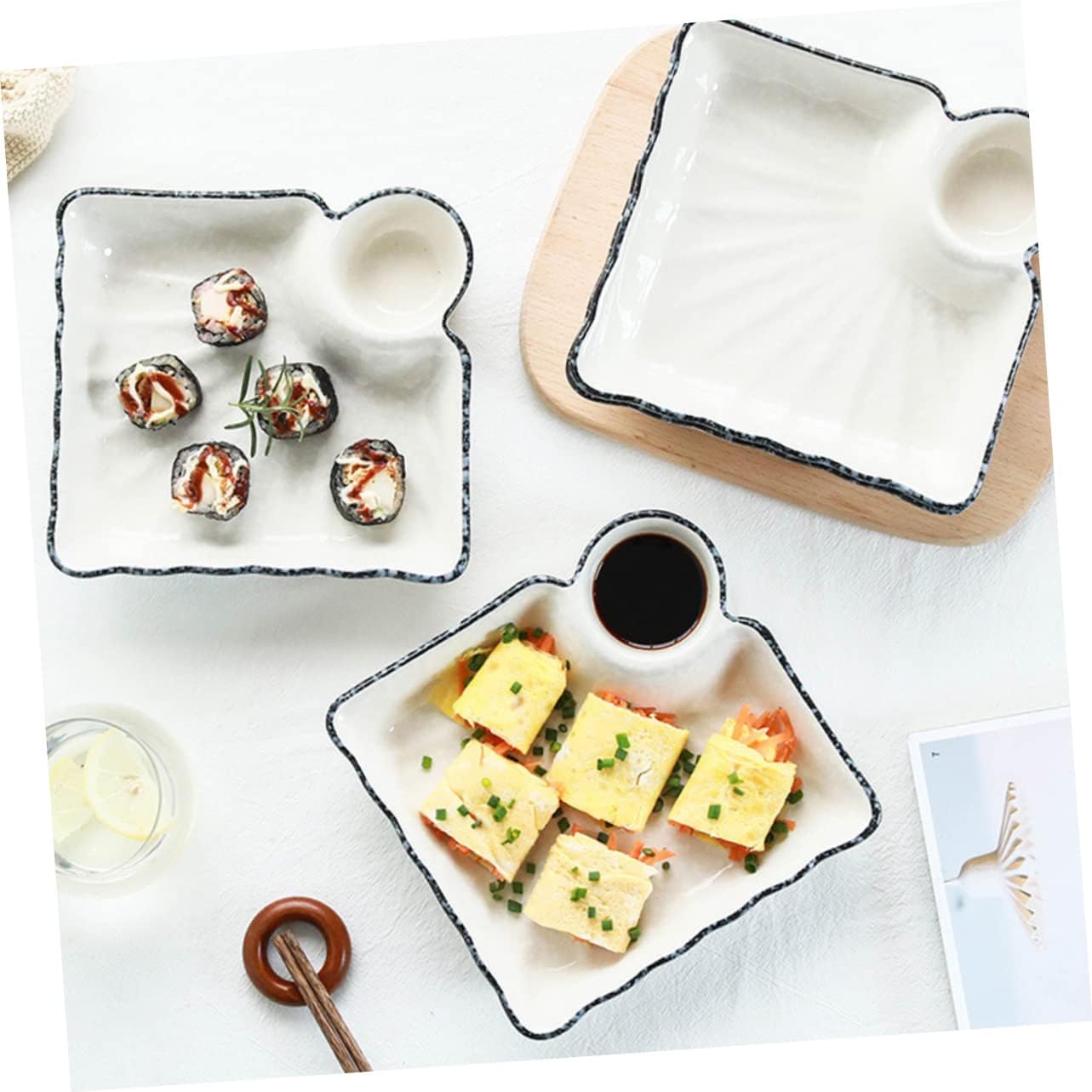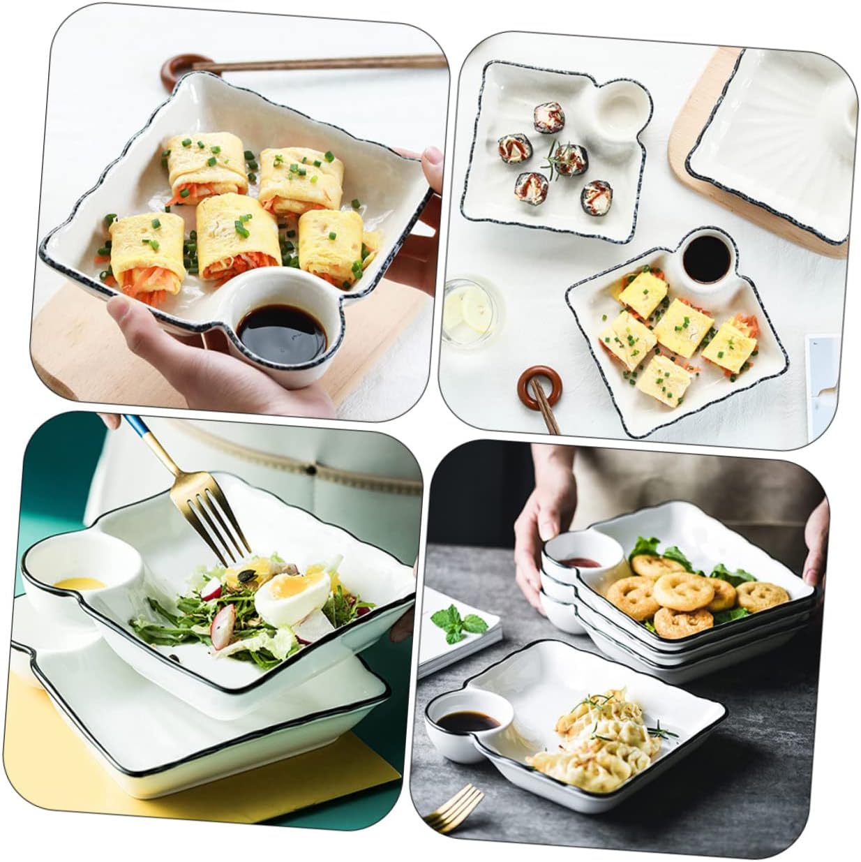 Package Include 2 x Dumpling Plates Characteristics -Size:18.50X17.30X3.80cm/7.27X6.80X1.49in sushi dip plate -Material:Ceramic ceramic snack plate -Color: dumpling plate -Made from good and ceramic material, and to use dumpling serving plate. -Suitable for many occasions use, decorative and , and excellent craftsmanship sushi serving tray. -It is easy and convenient to clean, and easy to store when not in use dipping saucers ceramics. -This plate is designed in compact, light in weight, easy to use and carry japanese dip plate. -Multi-functional plate with small saucer dish inside, great for serving dumpling, sushi, etc sushi dipping plate.Goods Descriptiondipping saucers ceramics Are you looking for a multi-functional food plate? Are you in search of a sturdy, trustworthy plate that can help you to store kinds of food? , ! Our food plate, made of good and premium ceramic material, must meet your needs.dumpling dish A nice storage container for you